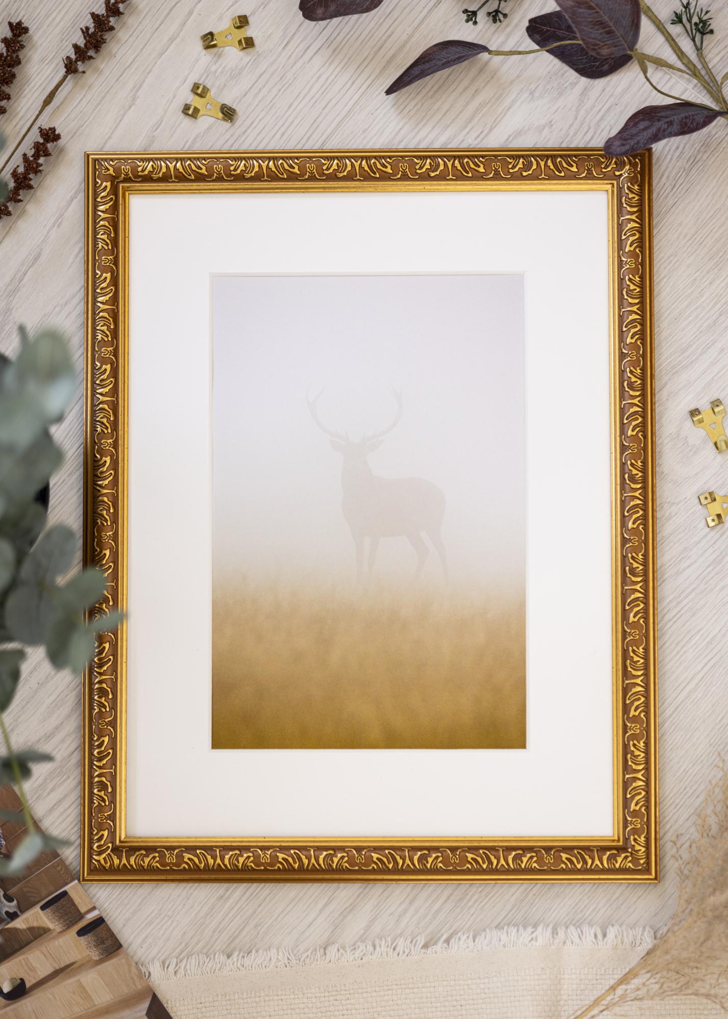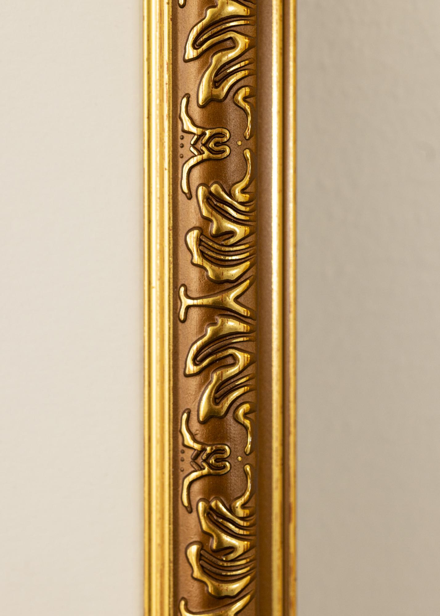 Ce cadre photo en or est une parfaite combinaison d'élégance classique et de fonctionnalité moderne. Avec sa taille de 30x40 cm, il est idéal pour mettre en valeur vos sujets favoris, qu'il s'agisse d'œuvres d'art ou de photographies. La finition dorée luxueuse et les détails décoratifs et ornés le long du bord intérieur du cadre ajoutent une touche de sophistication qui convient parfaitement aux styles d'intérieur à la fois classiques et élégants.
