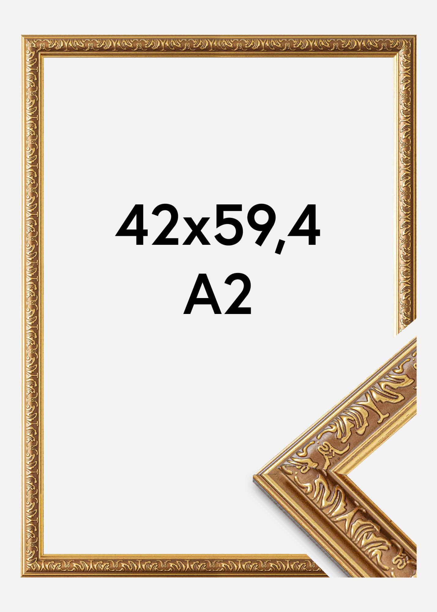 Embellissez vos murs avec un cadre photo qui respire l'élégance et la classe. Ce cadre photo doré est conçu pour s'adapter à des motifs de la taille de 42x59,4 cm (A2), ce qui le rend idéal pour mettre en valeur vos œuvres d'art ou photographies préférées. Avec une baguette mesurant 28 mm de largeur et une profondeur de 20 mm, ce cadre offre un encadrement robuste et élégant.