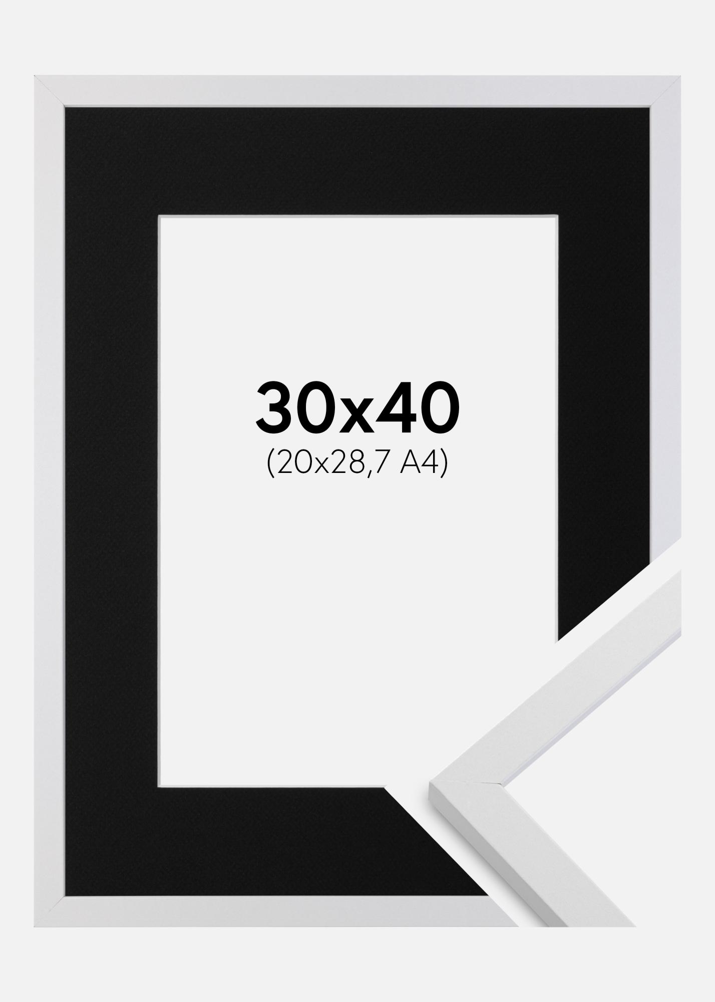 Cadre Trendy Blanc 30x40 cm - Passe-partout Noir 21x29,7 cm (A4)