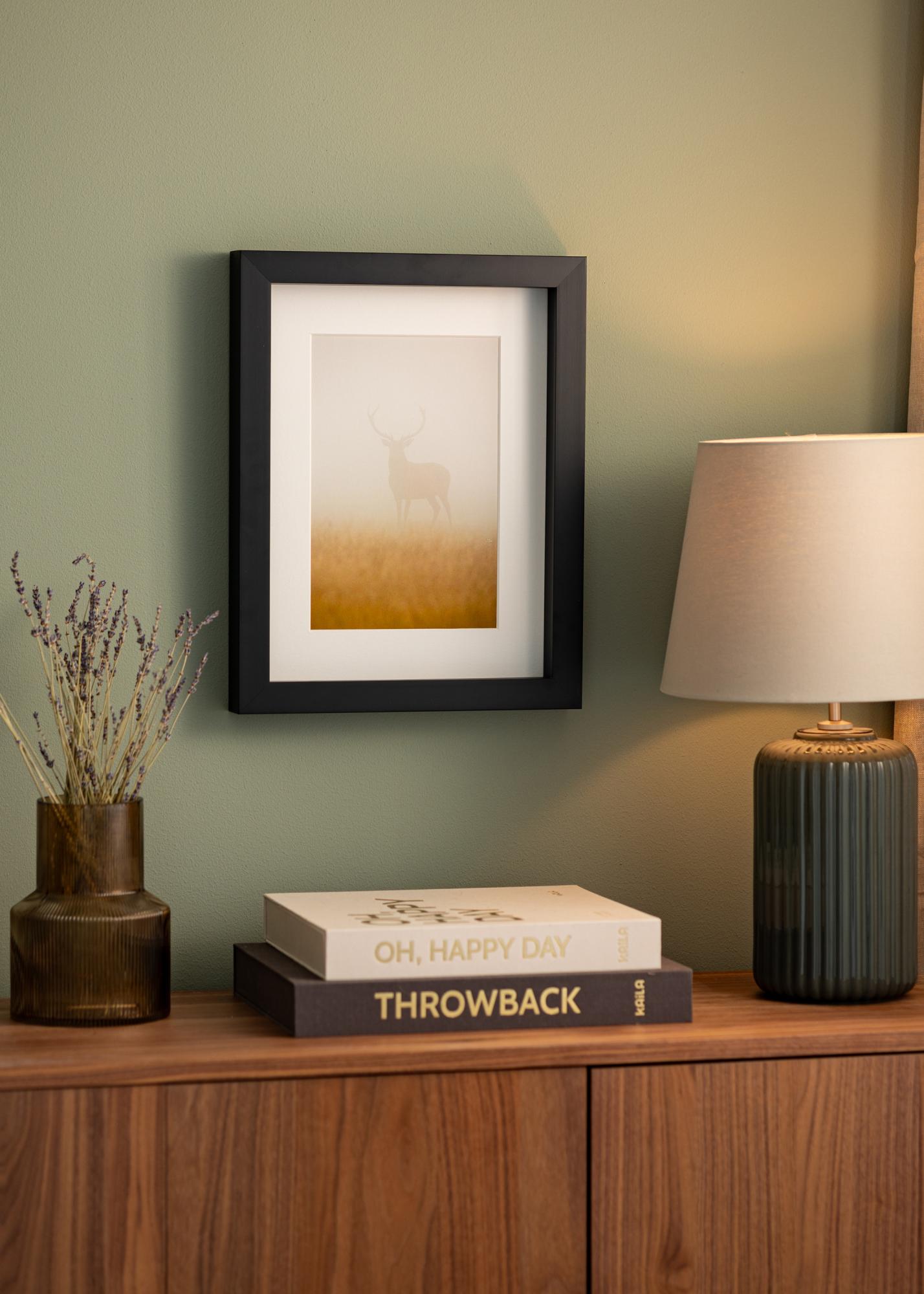Le cadre a une baguette de 30 mm de large et une profondeur de 50 mm, ce qui lui confère une sensation robuste et solide. Une caractéristique unique de ce cadre photo est sa baguette d'espacement, qui crée un espace aérien entre le motif et le verre. Cela donne une dimension supplémentaire à votre encadrement et permet au motif de vraiment être au centre de l'attention.