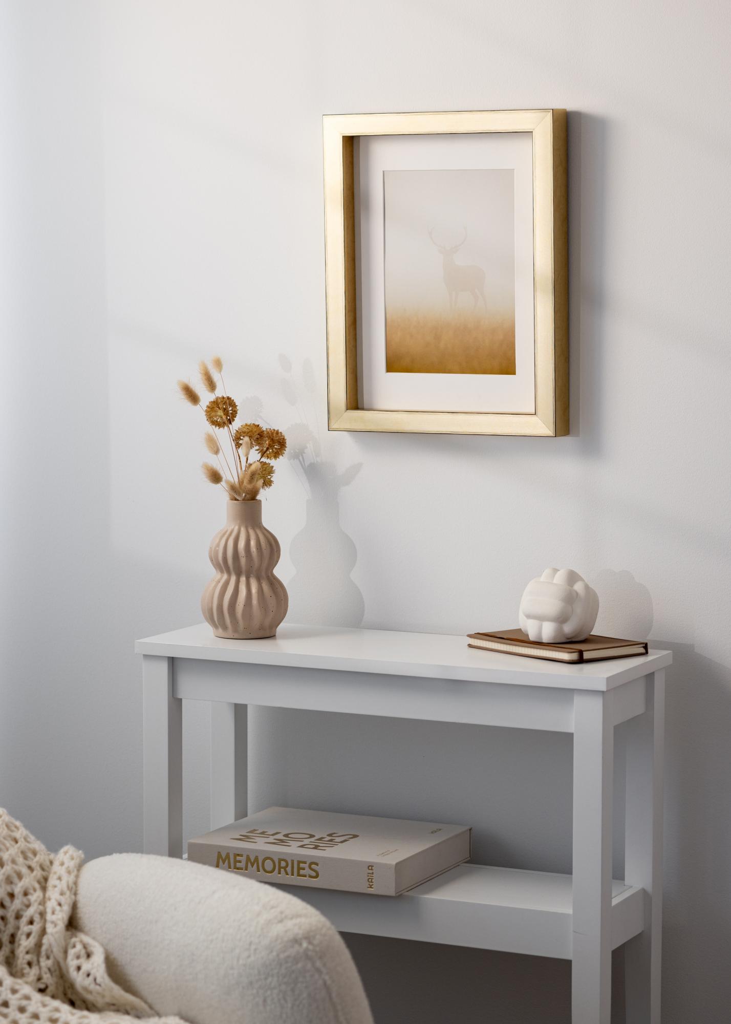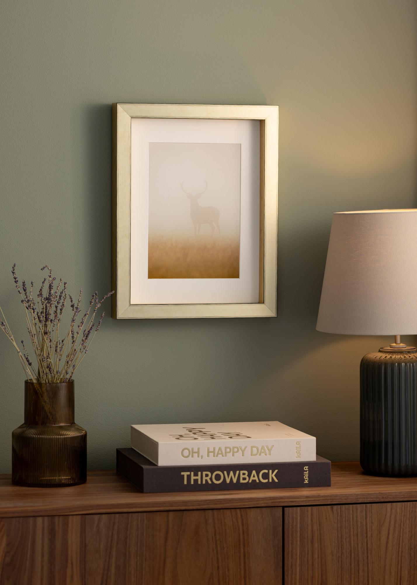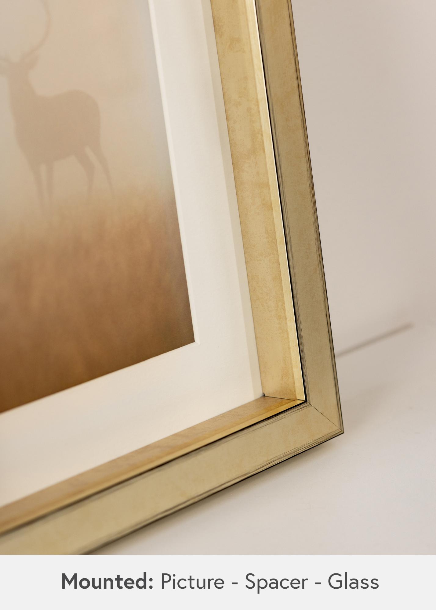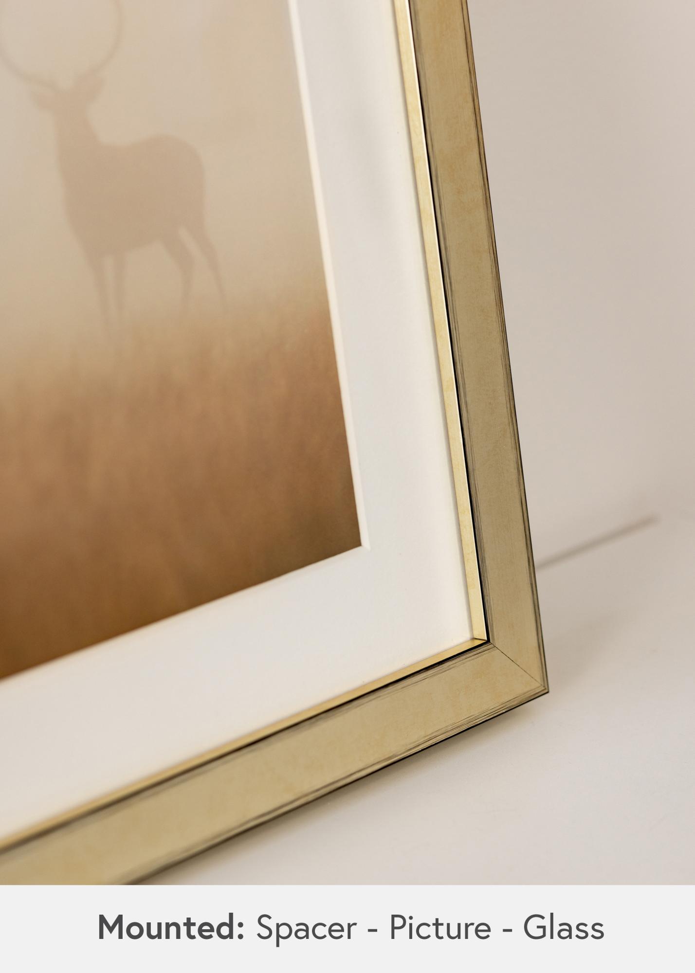 Avec le Cadre Tyr Or, vous avez la possibilité de personnaliser la façon dont vous souhaitez présenter votre sujet. Vous pouvez choisir de le placer à l'arrière du cadre pour créer une impression flottante, ou plus près de l'avant pour un encadrement plus traditionnel. Cette flexibilité permet de facilement harmoniser le cadre avec à la fois votre œuvre d'art et votre style d'intérieur.