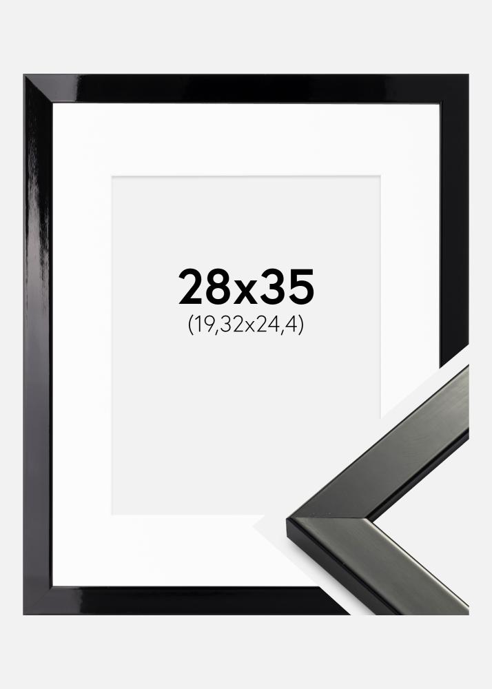 Cadre Uppsala Noir Très brillant 28x35 cm - Passe-partout Blanc 8x10 inches
