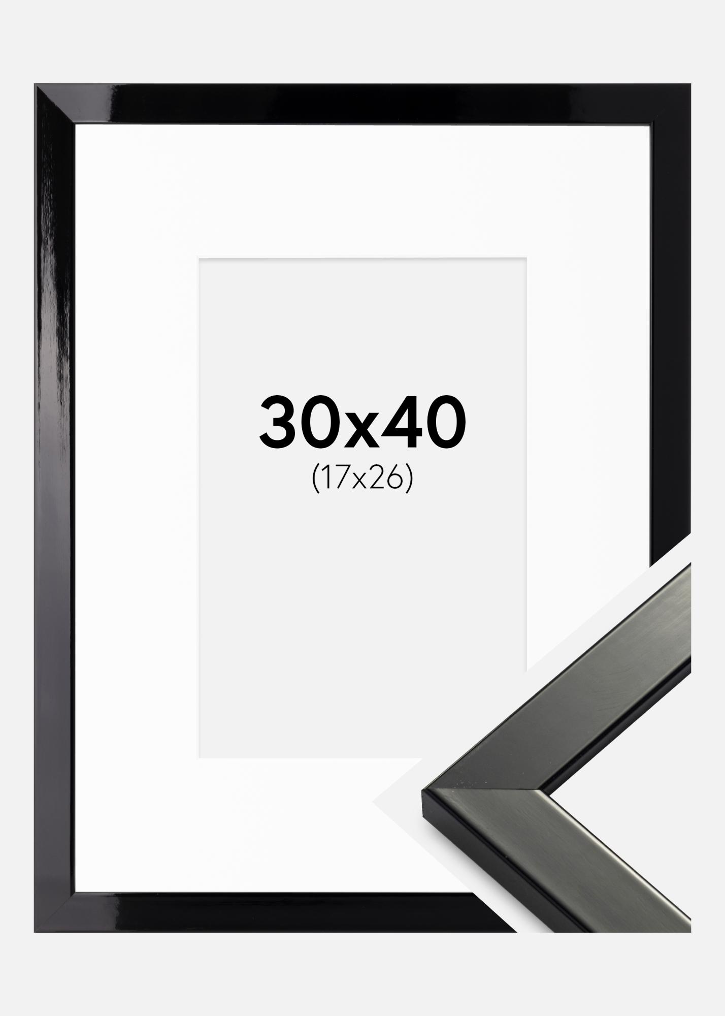 Cadre Uppsala Noir Très brillant 30x40 cm - Passe-partout Blanc 18x27 cm