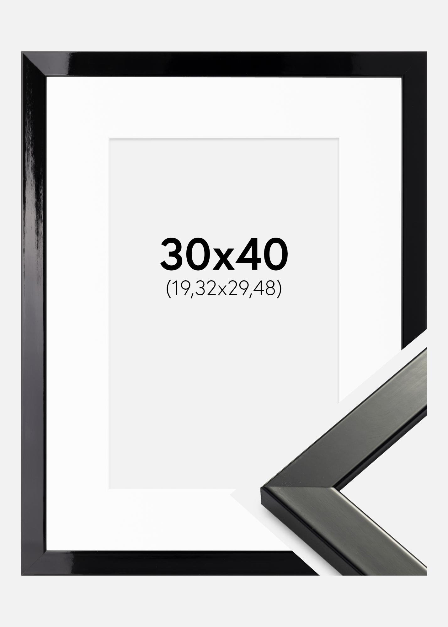 Cadre Uppsala Noir Très brillant 30x40 cm - Passe-partout Blanc 8x12 inches