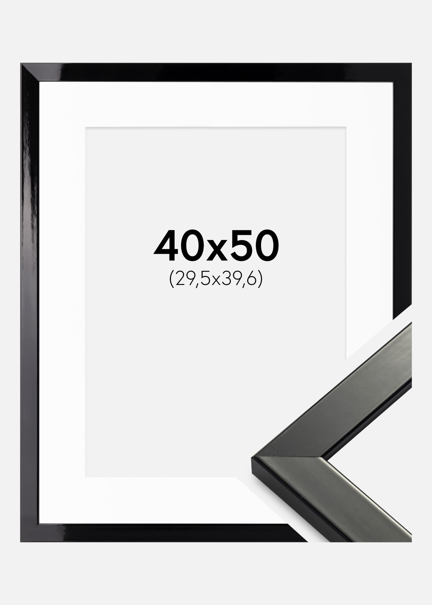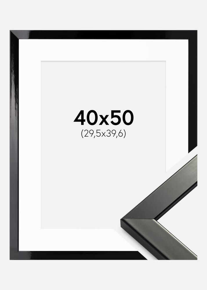 Cadre Uppsala Noir Très brillant 40x50 cm - Passe-partout Blanc 12x16 inches