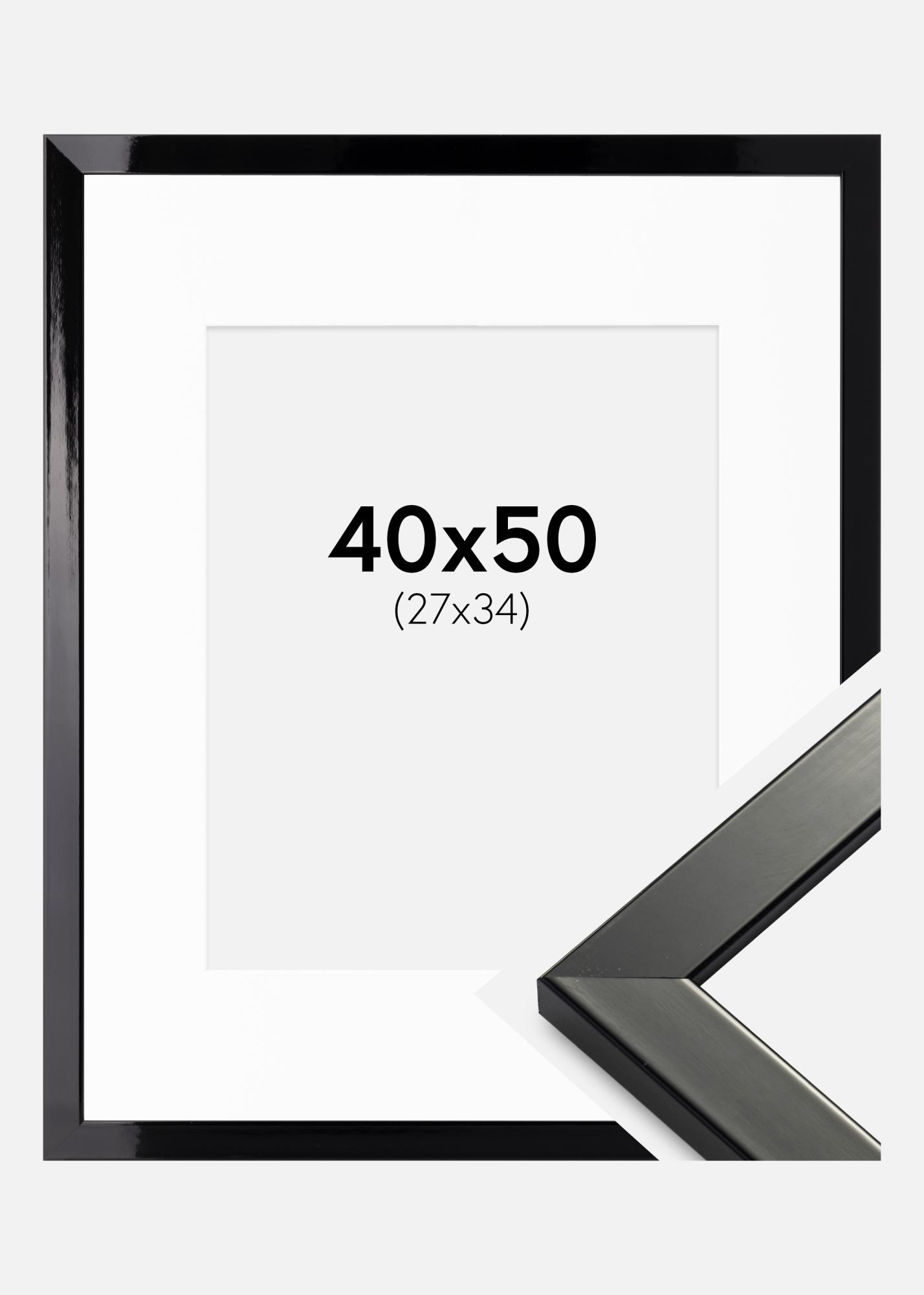 Cadre Uppsala Noir Très brillant 40x50 cm - Passe-partout Blanc 28x35 cm