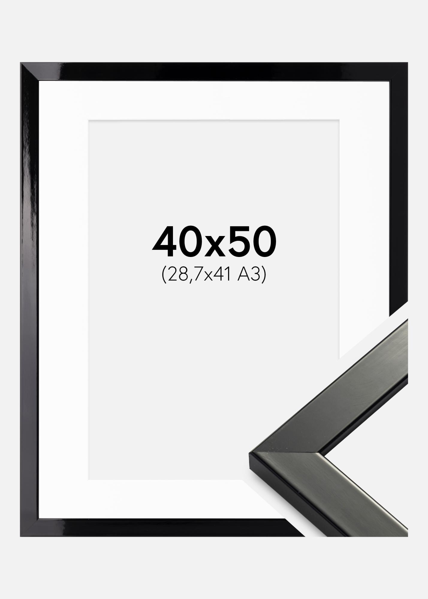 Cadre Uppsala Noir Très brillant 40x50 cm - Passe-partout Blanc 29,7x42 cm (A3)