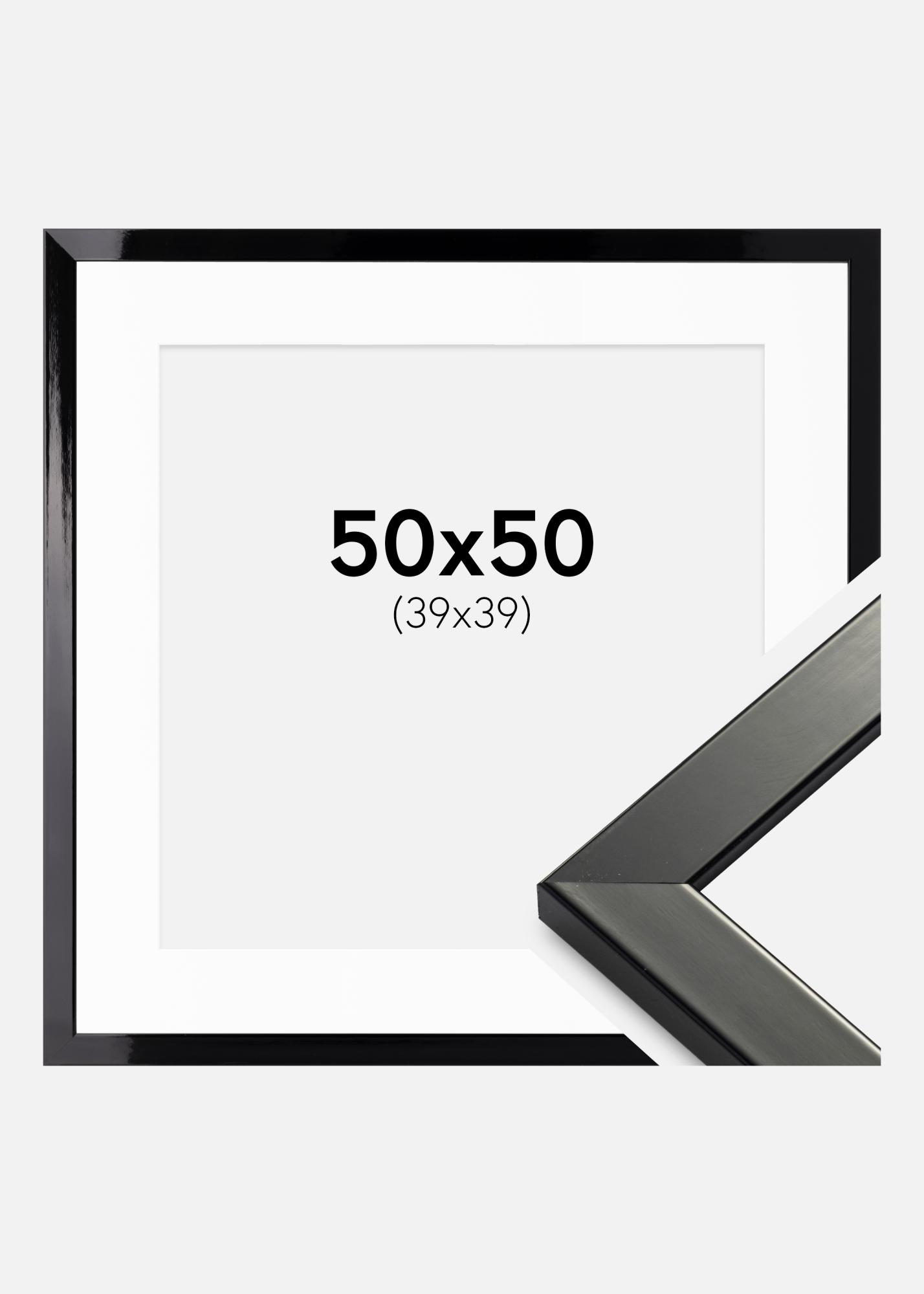Cadre Uppsala Noir Très brillant 50x50 cm - Passe-partout Blanc 40x40 cm