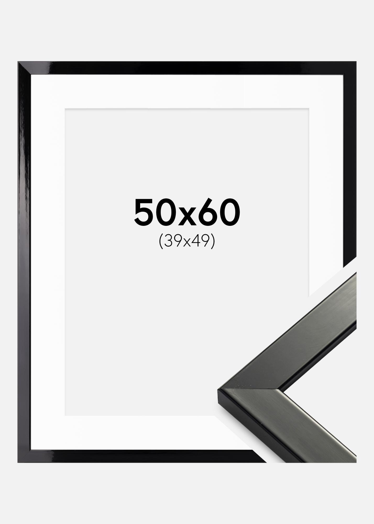 Cadre Uppsala Noir Très brillant 50x60 cm - Passe-partout Blanc 40x50 cm