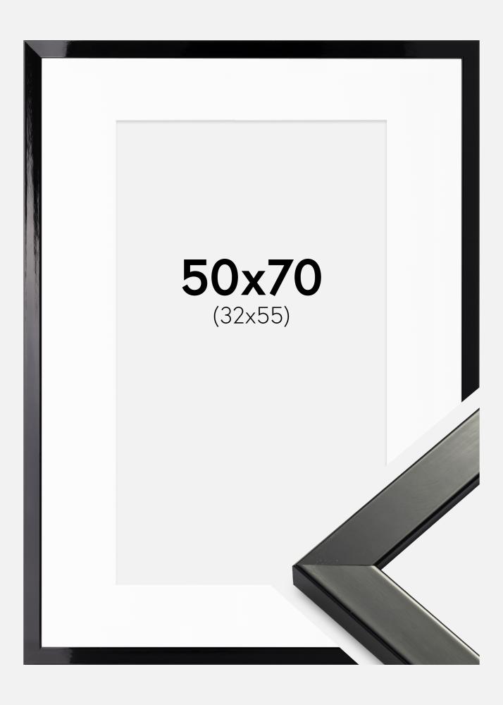 Cadre Uppsala Noir Très brillant 50x70 cm - Passe-partout Blanc 33x56 cm