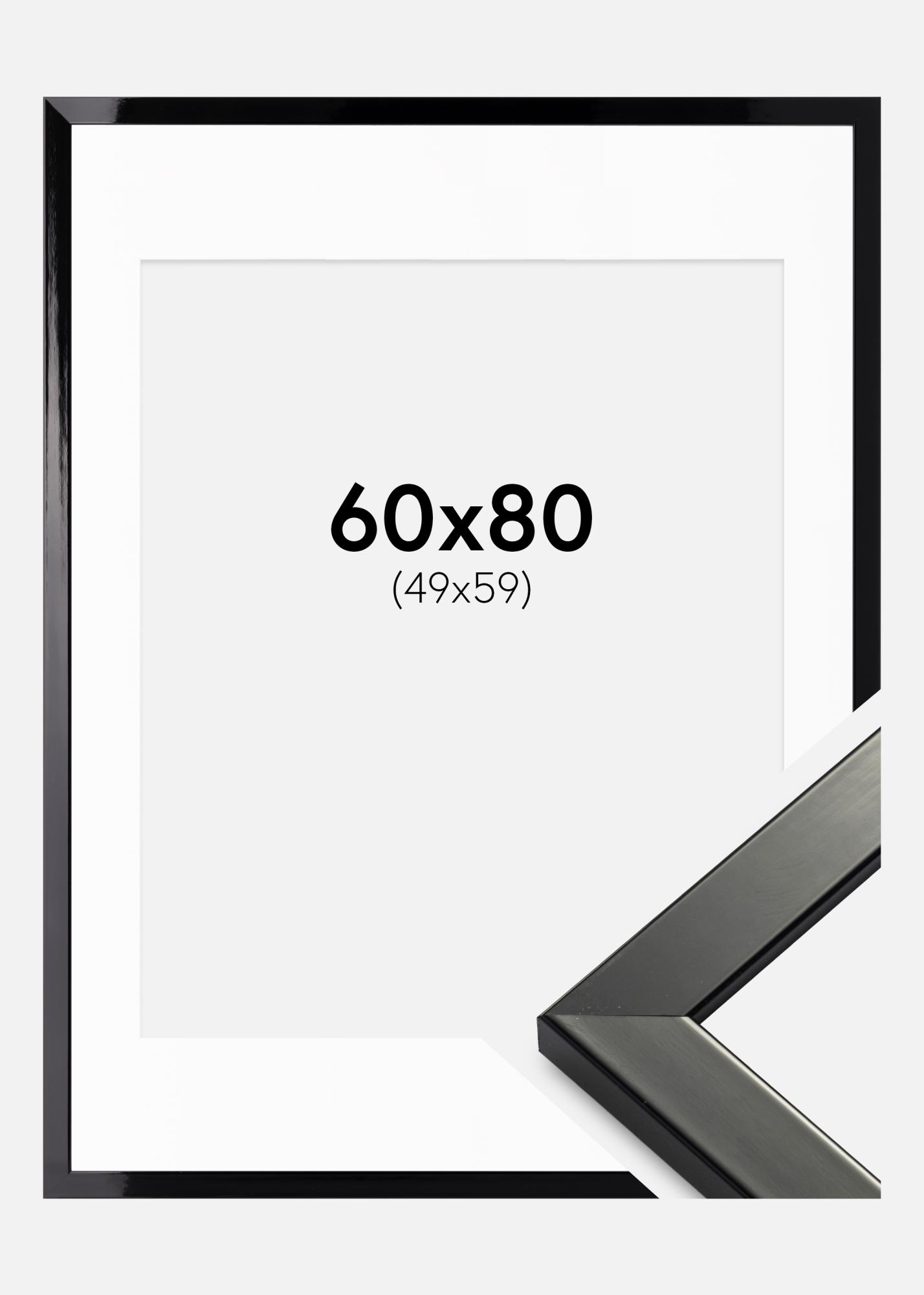 Cadre Uppsala Noir Très brillant 60x80 cm - Passe-partout Blanc 50x60 cm