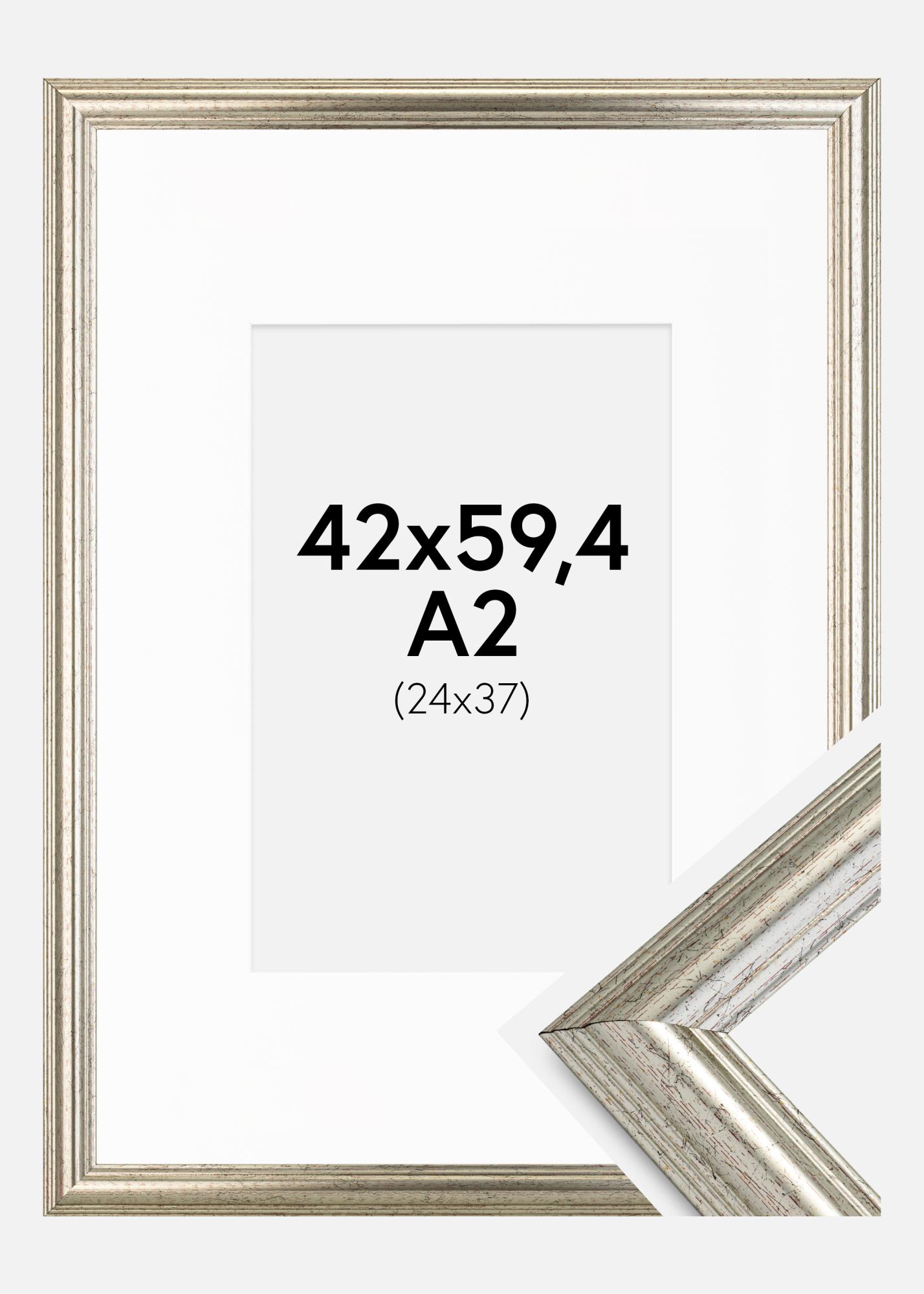 Cadre Västkusten Argent 42x59,4 cm (A2) - Passe-partout Blanc 25x38 cm