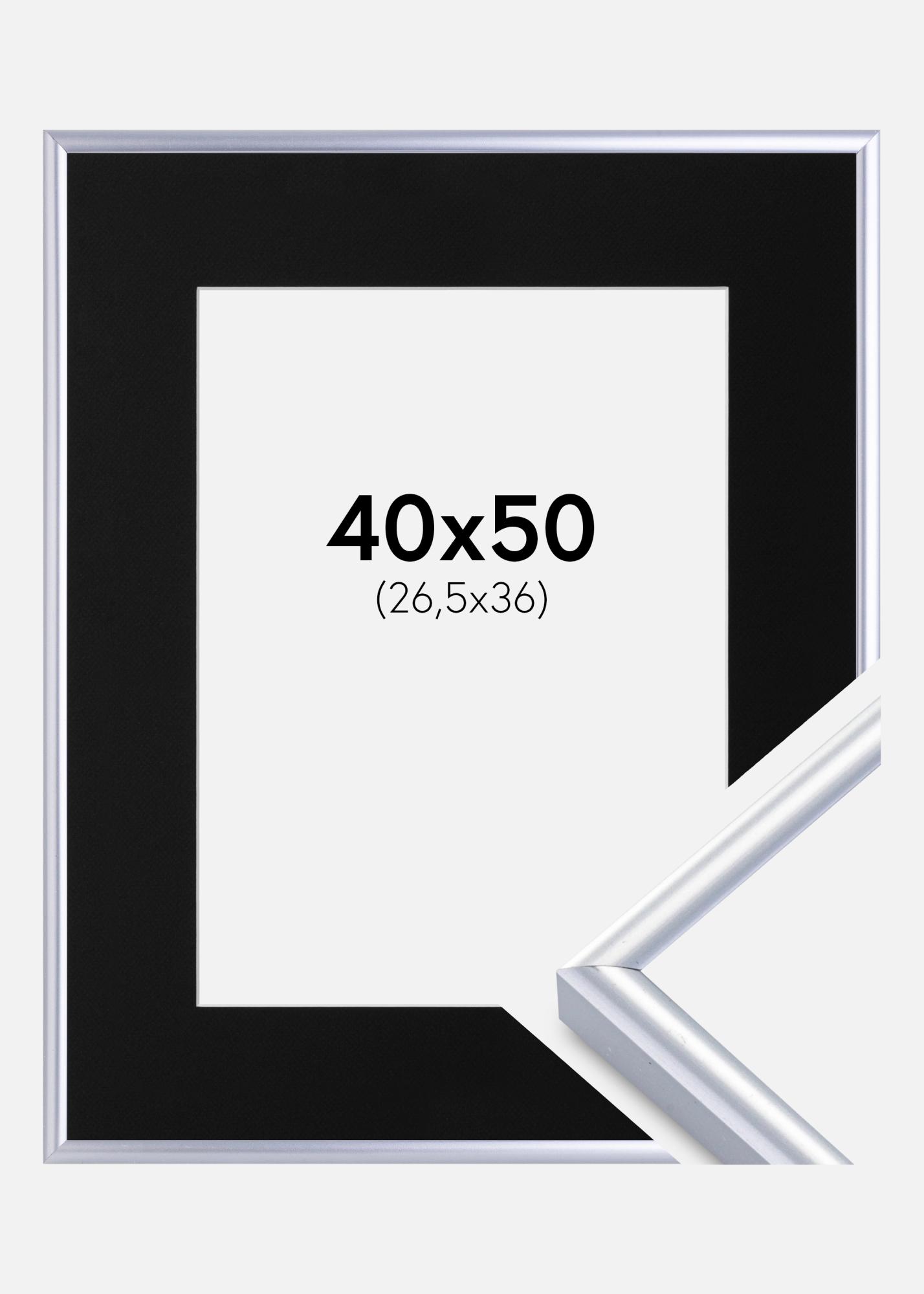 Cadre Victoria Argent 40x50 cm - Passe-partout Noir 27,5x37 cm
