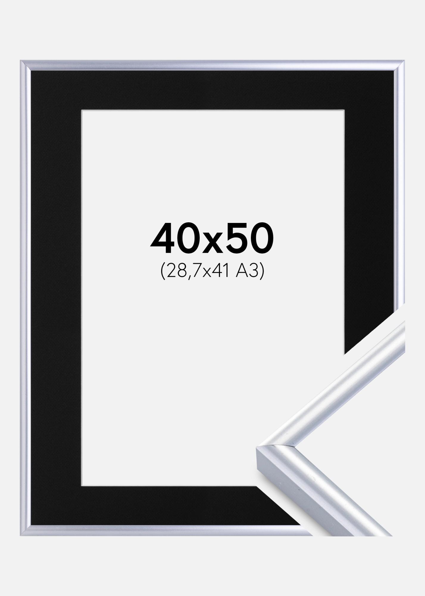 Cadre Victoria Argent 40x50 cm - Passe-partout Noir 29,7x42 cm (A3)