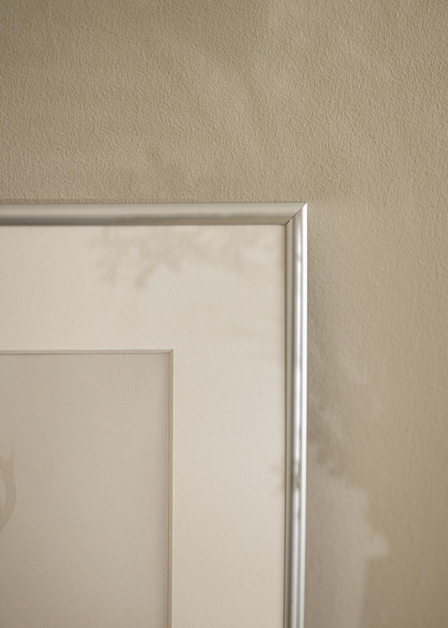 Ce cadre en argent présente une finition brillante tendance qui s'intègre parfaitement dans tous les intérieurs modernes. Le cadre possède une baguette fine avec un profil arrondi, ce qui en fait un bel élément de décoration qui ne détourne pas l'attention de vos sujets. La profondeur intérieure généreuse de 15 mm vous permet également d'insérer un passe-partout élégant dans le cadre.