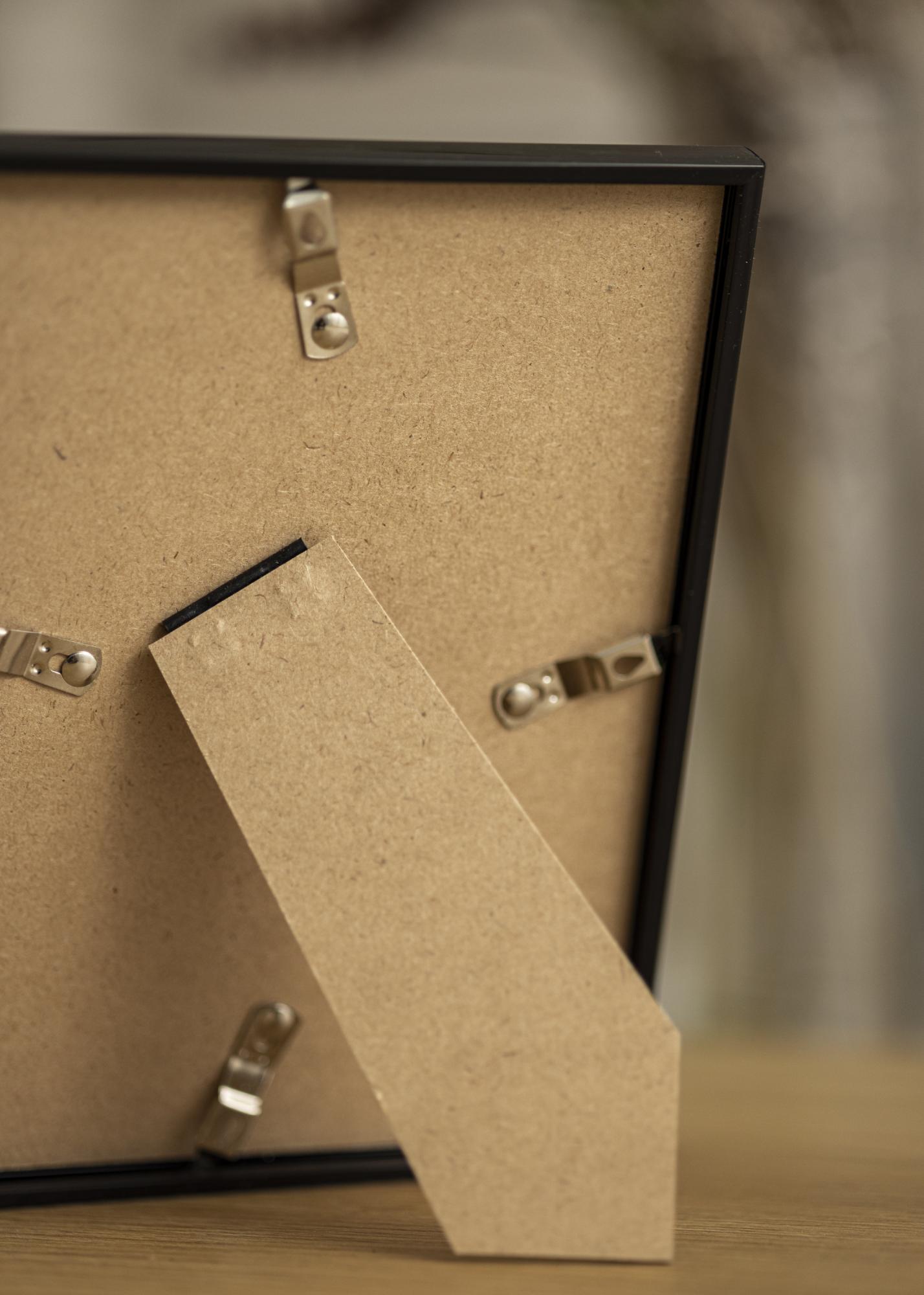 Le cadre est fabriqué dans un matériau léger et est équipé de verre acrylique, qui est une variante de verre incassable avec une clarté cristalline. Au dos, il y a un panneau arrière en HDF, que vous pouvez facilement détacher lorsque vous souhaitez insérer vos images dans le cadre. Vous le faites en tournant les petits clips métalliques qui maintiennent le panneau arrière en place.
