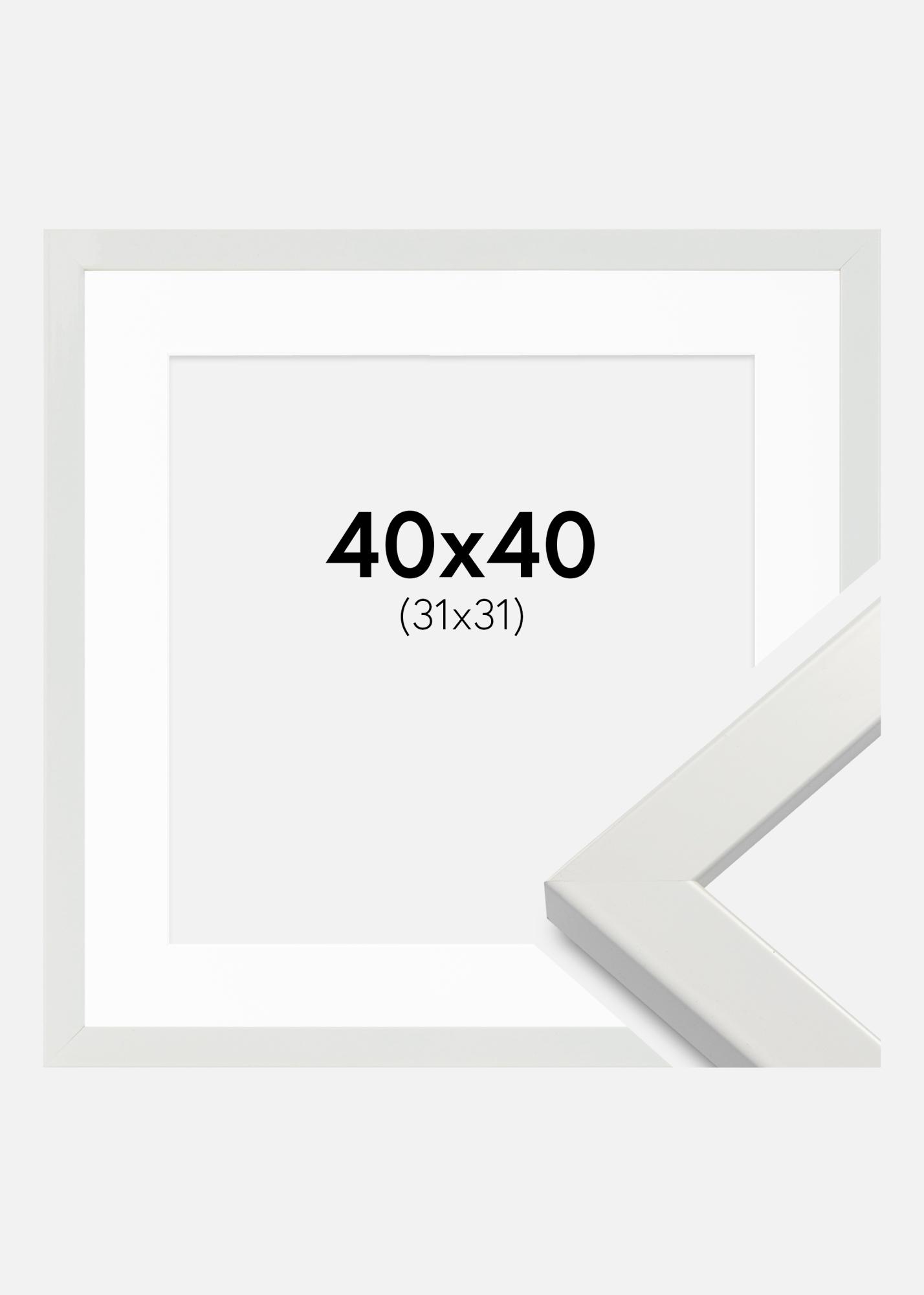 Cadre White Wood Glossy 40x40 cm - Passe-partout Blanc 32x32 cm