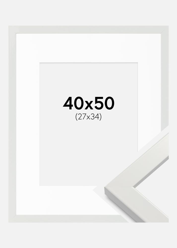 Cadre White Wood Glossy 40x50 cm - Passe-partout Blanc 28x35 cm