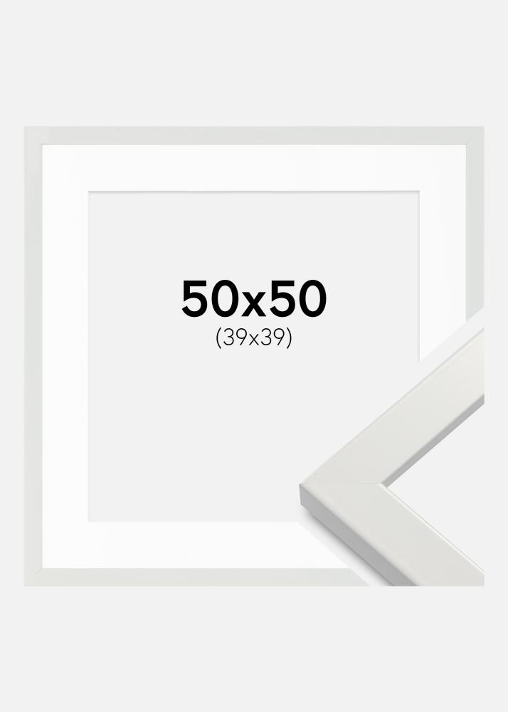 Cadre White Wood Glossy 50x50 cm - Passe-partout Blanc 40x40 cm