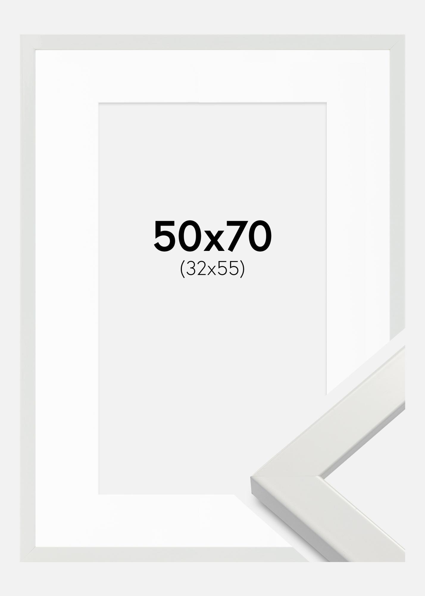 Cadre White Wood Glossy 50x70 cm - Passe-partout Blanc 33x56 cm
