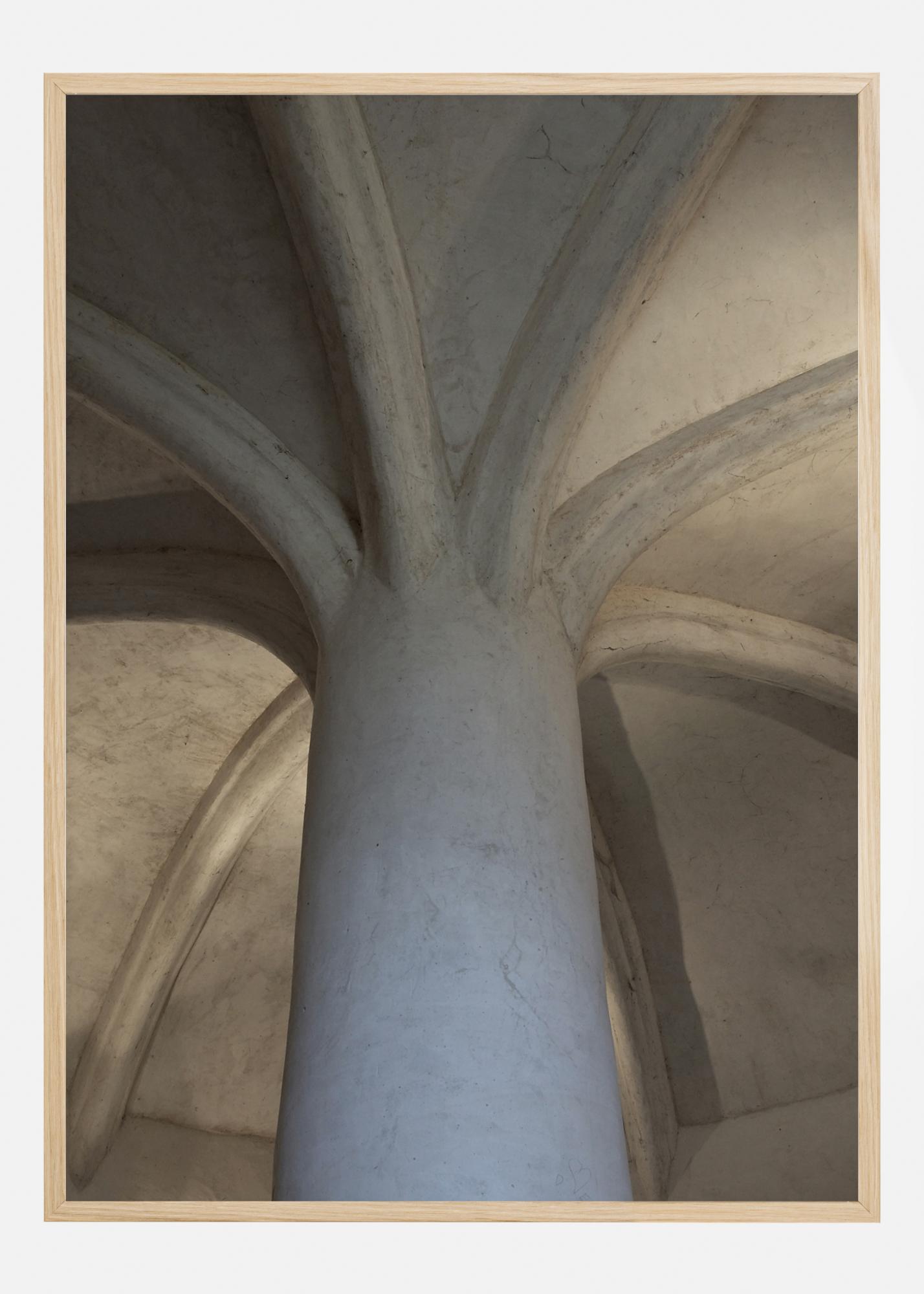 Une affiche architecturale de l'intérieur d'une chapelle ou du plafond d'une église. Une colonne unique trône au centre et s'élève vers le plafond où huit voûtes se déploient comme une fleur. La fraîcheur de la pierre crée un sentiment de grandeur que vous pourrez apprécier chez vous.