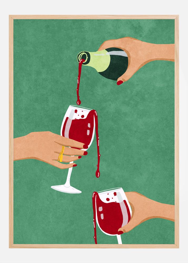 Ce poster ludique et sophistiqué capture l'essence de l'amitié et de la célébration. L'illustration montre trois mains tenant élégamment des verres à vin et une bouteille, avec un filet de vin rouge qui vient d'être versé dans l'un des verres. Cette scène rend hommage aux petits moments qui rendent la vie spéciale, et est un choix idéal pour ceux qui souhaitent apporter un sentiment de convivialité et de festivité à leur maison. Cette impression est autant un sujet de conversation qu'un élément décoratif.