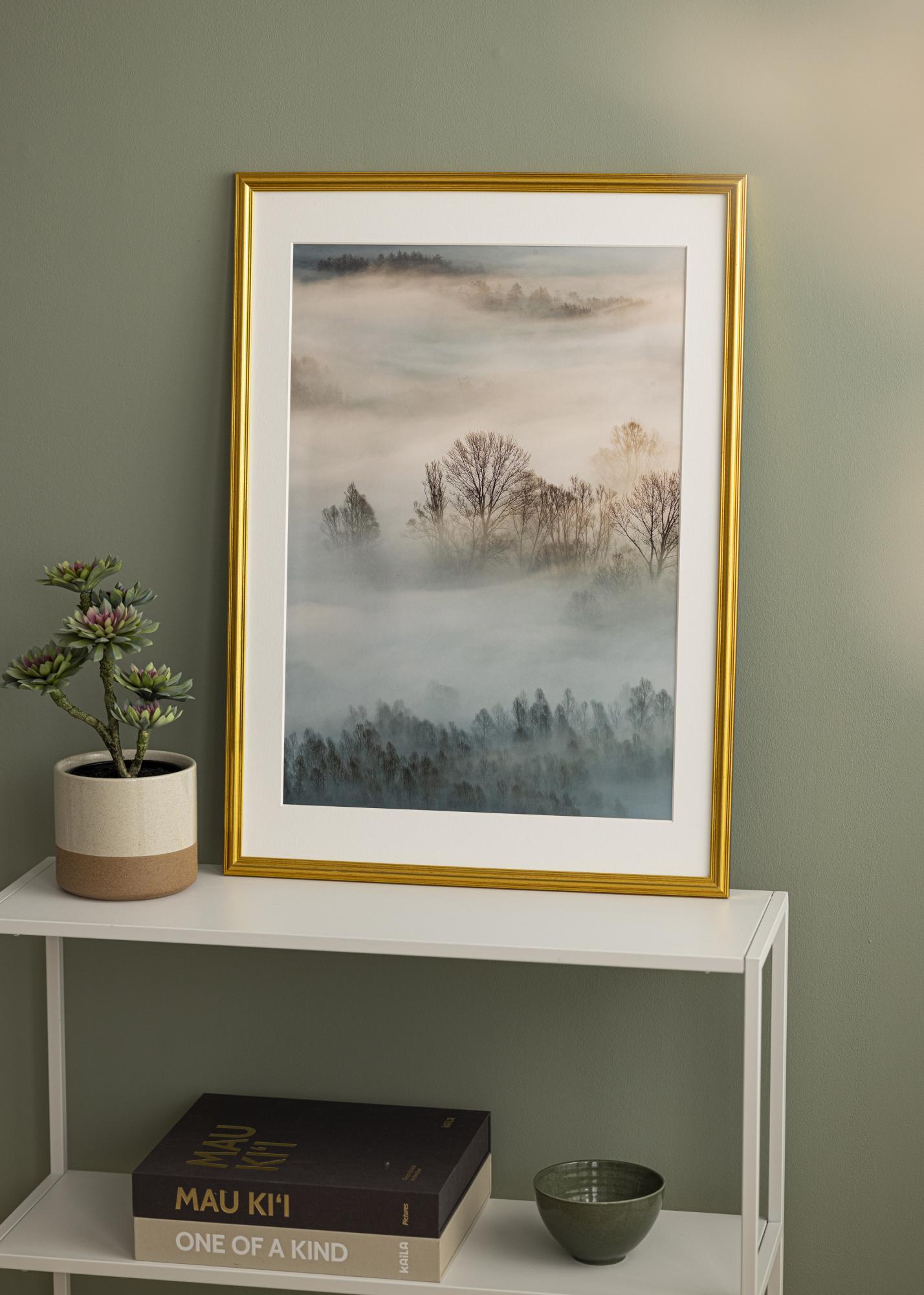 Sublime cadre de couleur dorée avec des éléments tachetés en rouge dans un design classique intemporel. Avec sa couleur argent neutre, c'est un cadre qui convient à presque tous les motifs et contextes.