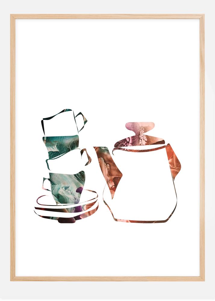 Une affiche de café remplie de délicieux grains de café. De multiples teintes brunes brillantes remplissent cette image alors que les grains s'étalent pour remplir l'affiche. Vous aurez l'eau à la bouche à l'idée du café que vous pourrez presque préparer avec ces grains en accrochant cette affiche chez vous.