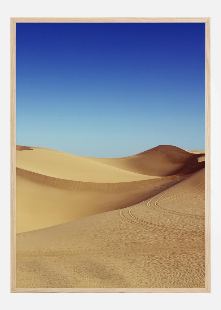 Un poster vibrant de dunes d'un jaune éclatant avec deux séries de traces de pneus qui courent dans une courbe. Les dunes lumineuses sont mises en valeur par le bleu exaltant du ciel. Perdez-vous dans ce vaste espace ouvert lorsque vous accrochez cette superbe affiche à votre mur.