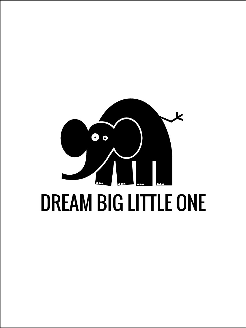 Poster moderne noir et blanc pour la chambre d'enfant avec un éléphant amusant qui encourage le petit à rêver grand dans la vie. Le motif est graphique et épuré, ce qui fait qu'il s'intègre dans toutes les chambres d'enfants. Le print se marie bien comme tableau unique au-dessus du lit ou avec d'autres posters sur un mur plus long et peut être combiné avantageusement avec le poster Dino Favorite, Kanin Happy, Hund Little, Superhero ou Pingvin Cool.