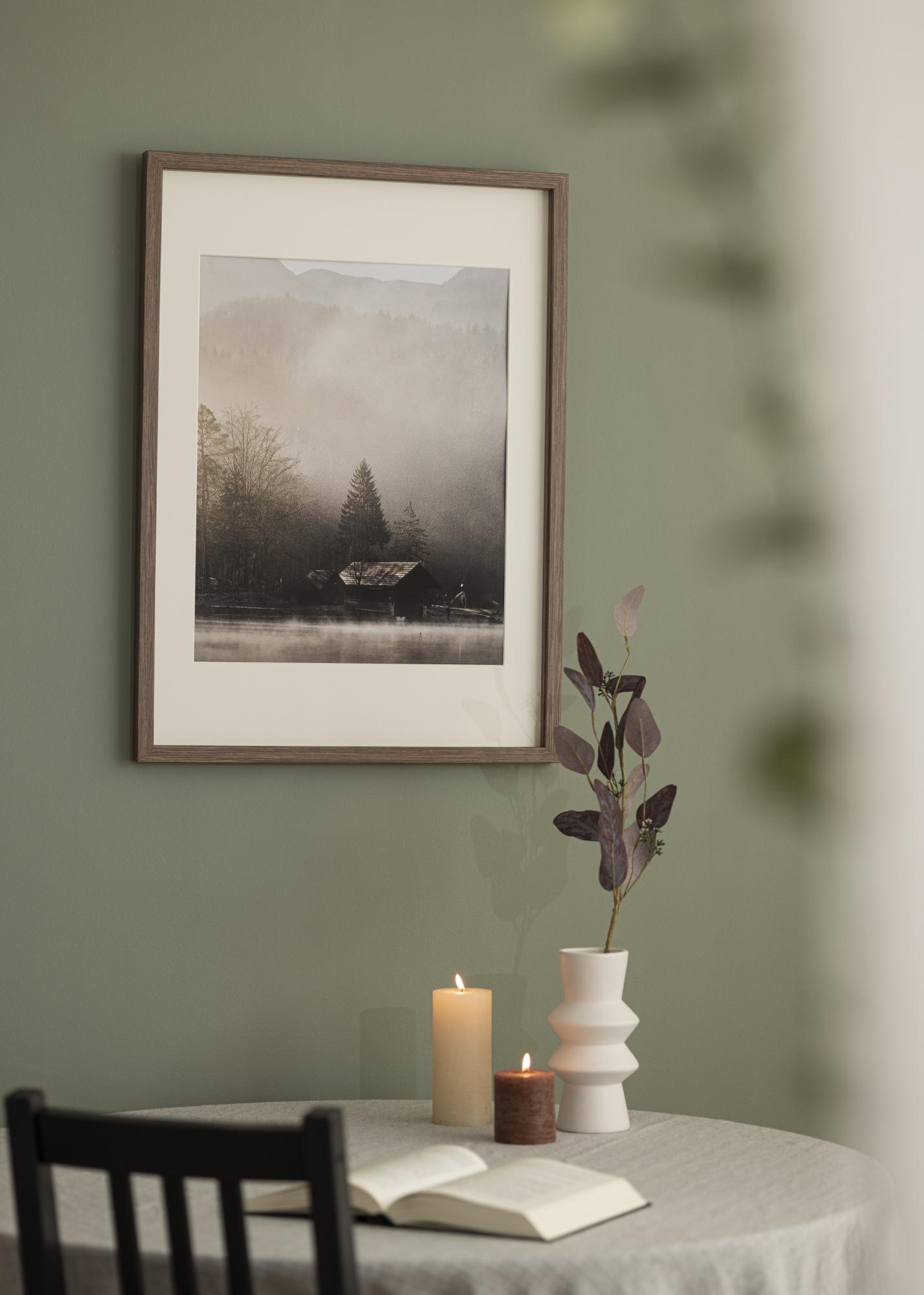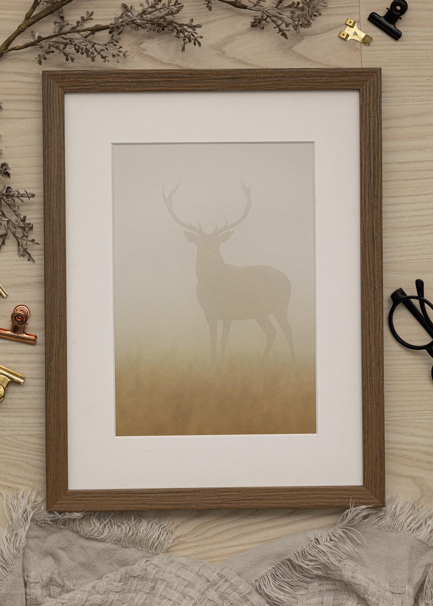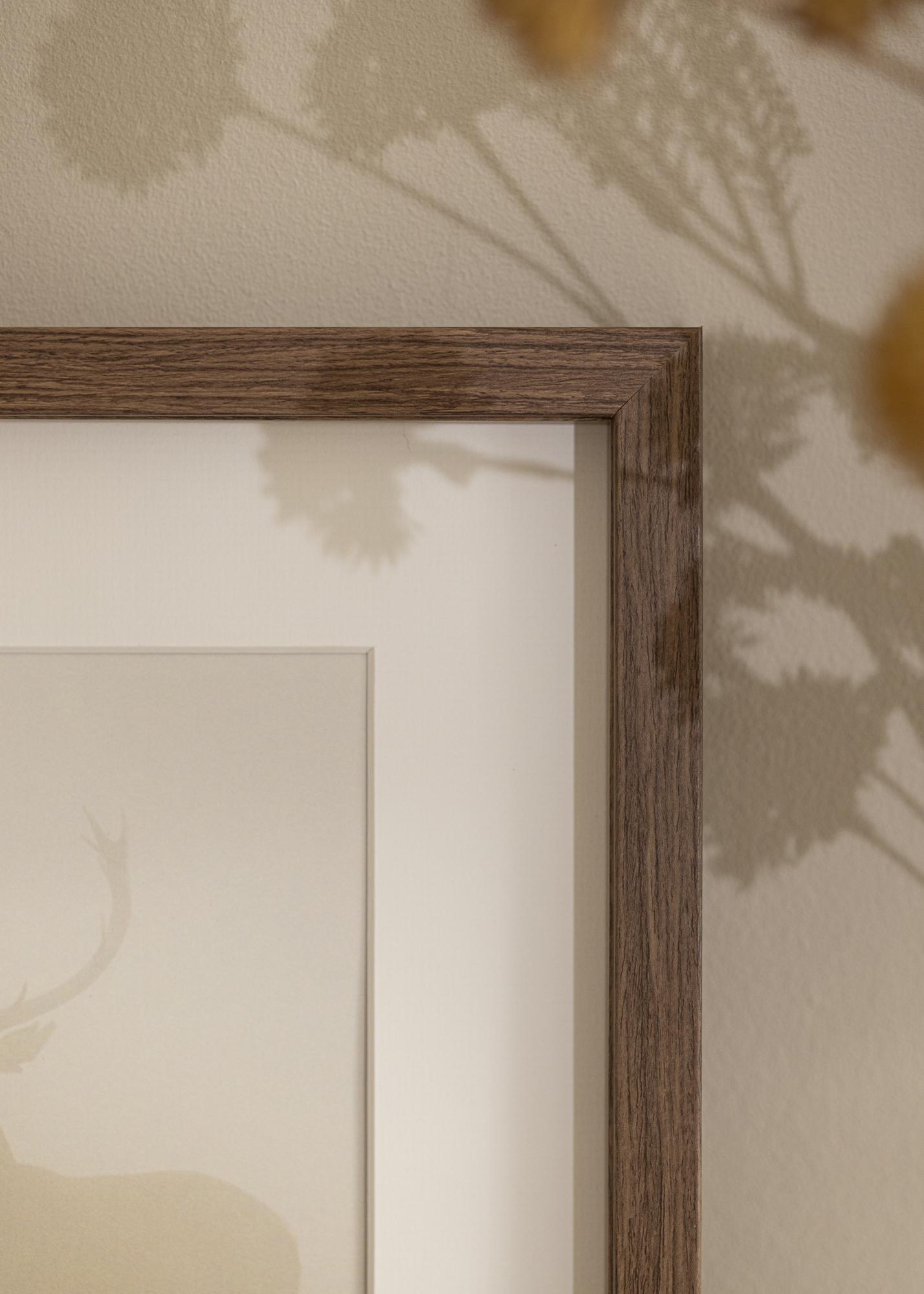 Élégant cadre en boîte avec une surface en bois marron veiné d'une profondeur de 30 mm. Le cadre comprend également une bordure de distance qui vous permet d'encadrer facilement d'autres choses que des images, comme un maillot de football, par exemple. Cela fait de "Elegant Box Marron" un cadre avec de nombreuses possibilités. Un passe-partout blanc est également inclus avec le cadre.