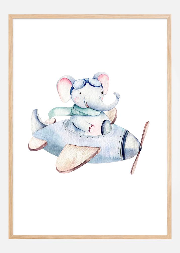 La couleur bleu fraîche de l'avion s'harmonise magnifiquement avec les teintes grises de la peau de l'éléphant, tandis que les tons roses subtils des oreilles ajoutent une douceur à l'image. C'est une affiche artistique qui promet de devenir un favori immédiat dans une chambre d'enfant ou une salle de jeux, inspirant des heures de jeu créatif et d'histoires imaginatives. C'est aussi un élément de décoration intérieure joliment stylé capable de captiver et d'enchanter l'œil dans n'importe quel espace de vie décontracté.