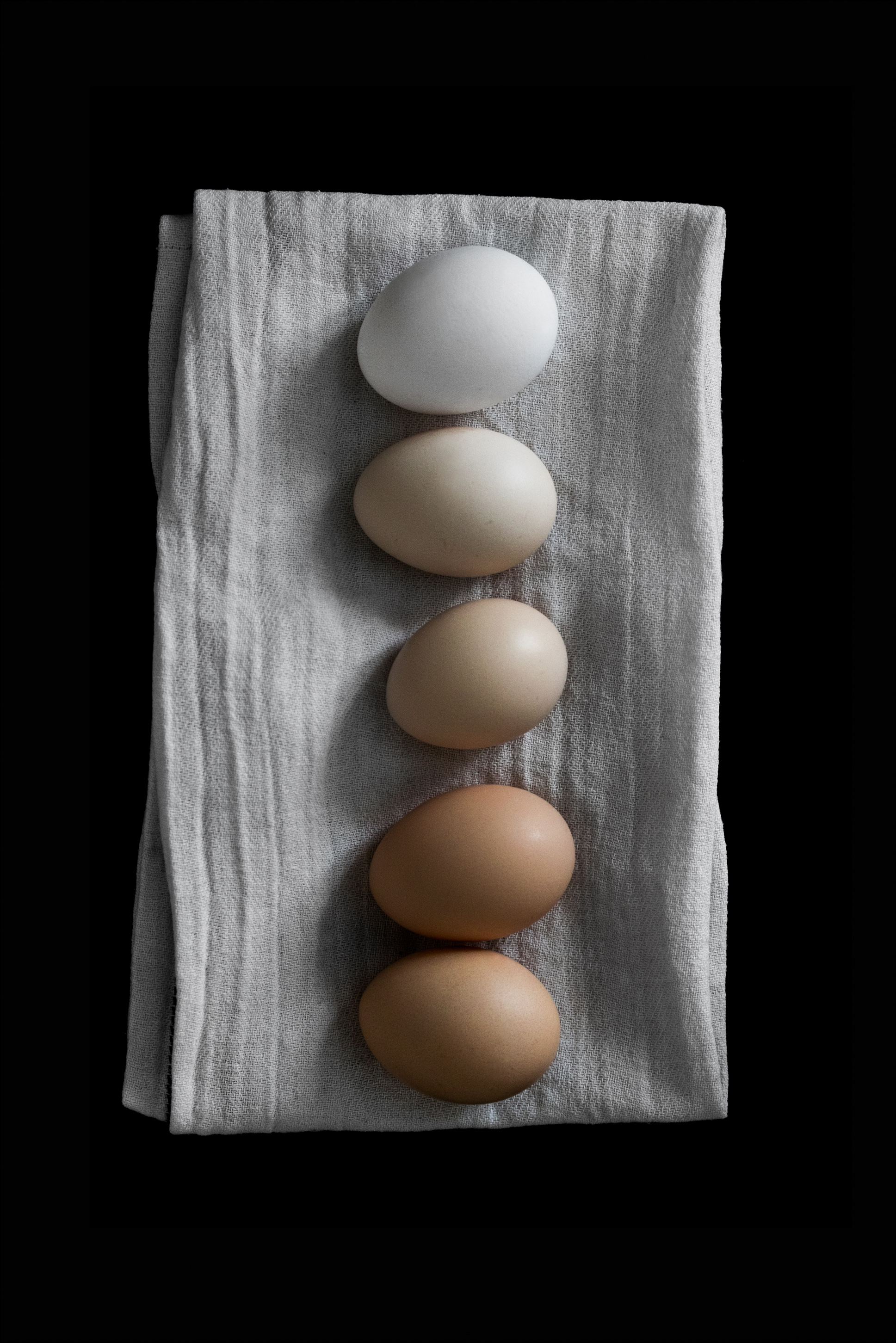 Un joli poster rustique représentant cinq œufs disposés en rang sur un tissu blanc. Chaque œuf est d'une couleur différente, du blanc en haut au brun en bas. Pour donner une touche amusante et excentrique à la cuisine, ajoutez cette affiche au mur de votre cuisine.