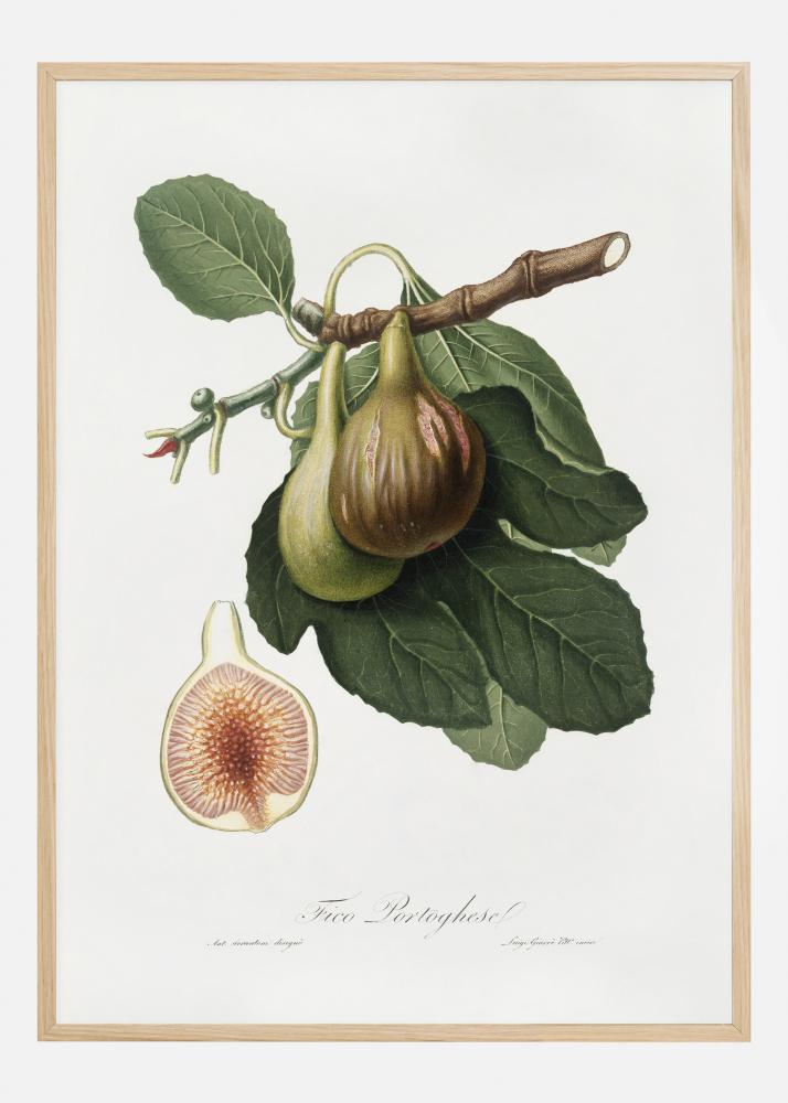 Une affiche botanique d'une illustration de figues. Soyez vieille école en accrochant ce dessin simple, mais détaillé, à votre mur. La peinture à l'aquarelle capture tous les détails, même une coupe transversale de la figue et des graines à l'intérieur.