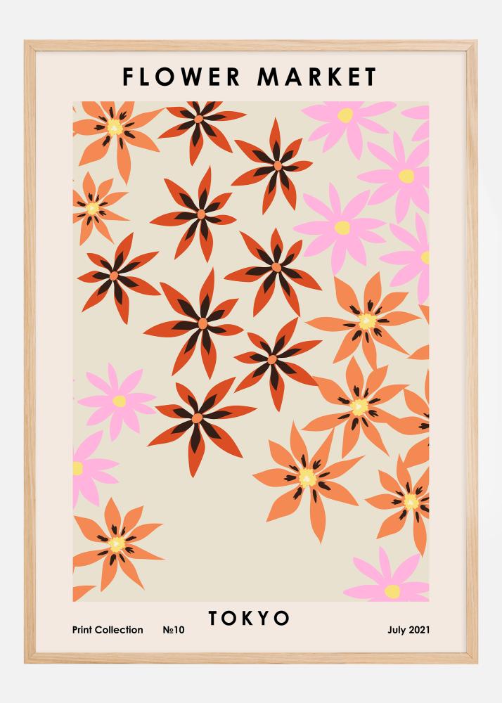 Ce poster vif capture l'essence d'un marché aux fleurs à Tokyo avec son motif éblouissant de fleurs en corail, noir et rose sur un fond beige clair. Cette affiche apporte une sensation ludique et contemporaine qui embellit chaque pièce avec son charme esthétique. Chaque fleur est simple mais artistiquement rendue, avec des nuances qui donnent une sensation de profondeur et de dimension au design.