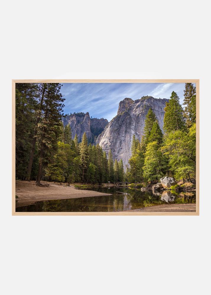 Impression avec de hautes falaises et une forêt tranquille se reflétant dans une surface d'eau paisible. Un silence éloquent qui crée un paysage paisible. Avec un cadre en matériaux naturels, le tableau s'intègre dans tous les types de décorations et de palettes de couleurs. Accrochez la photographie avec d'autres images de nature ou choisissez une taille plus grande pour un effet saisissant comme tableau unique.