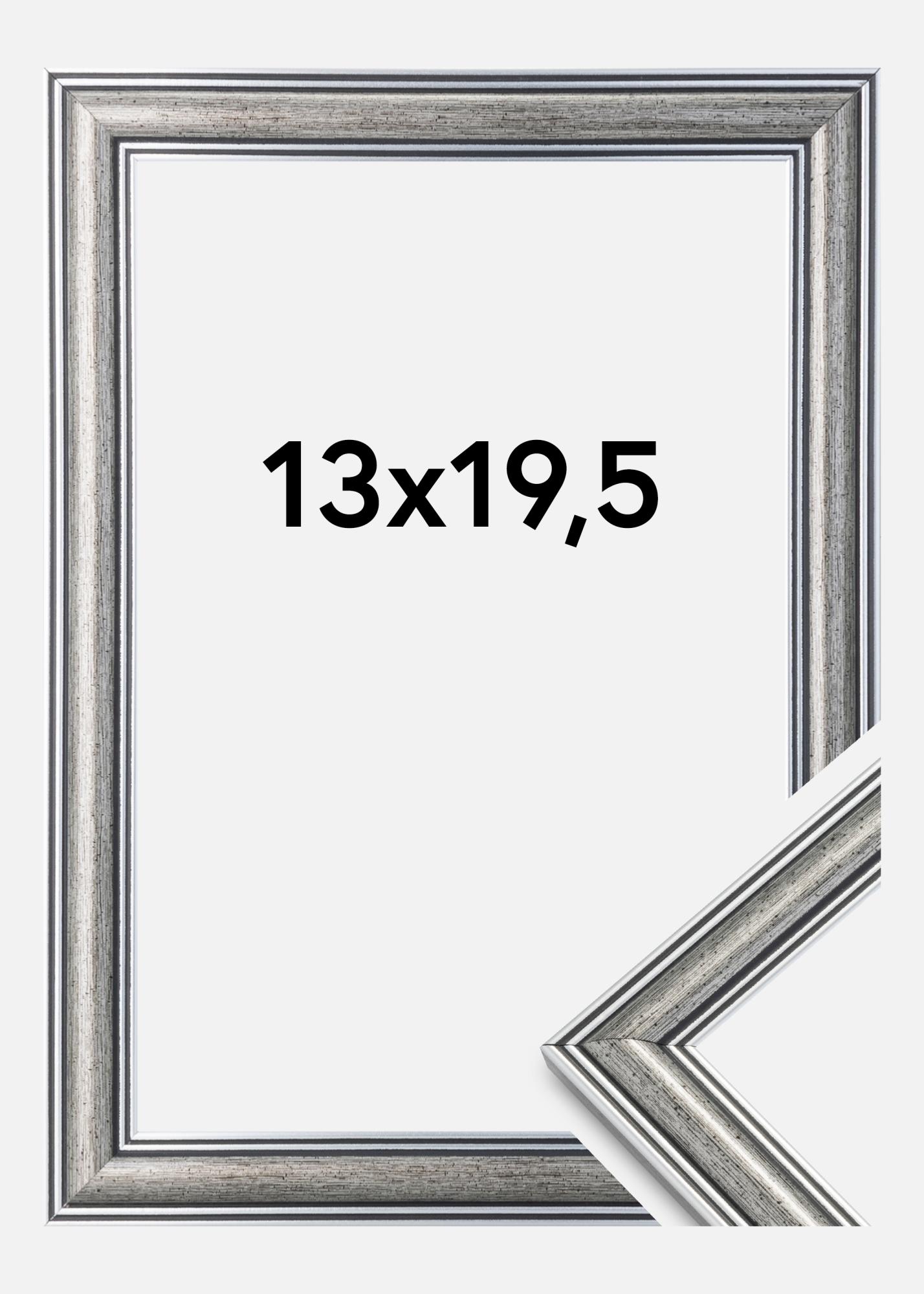Frigg est un cadre argenté avec des lignes noires et des éléments tachetés en noir. Parfait lorsque vous recherchez un large cadre argenté traditionnel qui convient à de nombreux types d'images et de décorations.