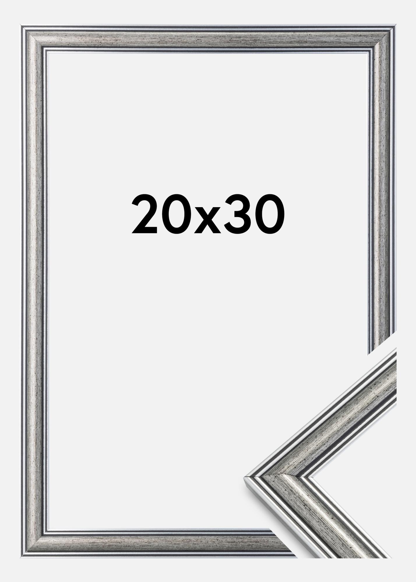 Frigg est un cadre argenté avec des lignes noires et des éléments tachetés en noir. Parfait lorsque vous recherchez un large cadre argenté traditionnel qui convient à de nombreux types d'images et de décorations.