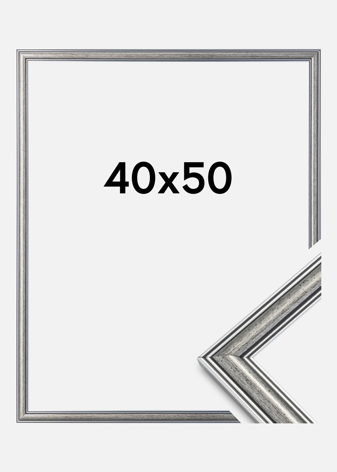 Frigg est un cadre argenté avec des lignes noires et des éléments tachetés en noir. Parfait lorsque vous recherchez un large cadre argenté traditionnel qui convient à de nombreux types d'images et de décorations.