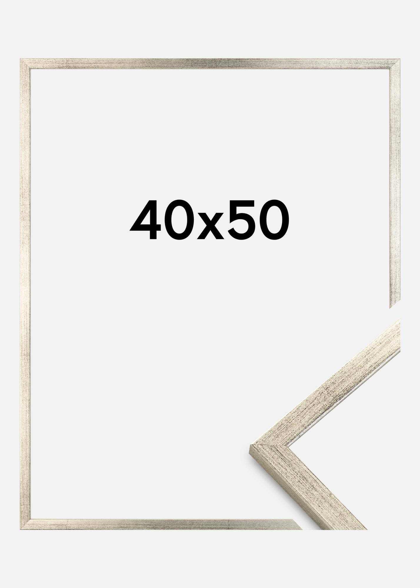 Élégant cadre en bois au profil droit qui a une formidable sensation vintage et une surface argentée usée avec des éléments tachetés de noir. Avec son profil doux de couleur argentée, Galant Argent est un cadre qui convient à pratiquement tous les types d'images.