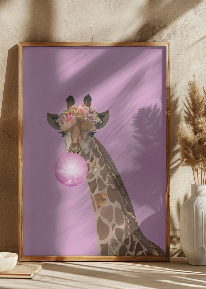Giraffe pink bubblegum Poster