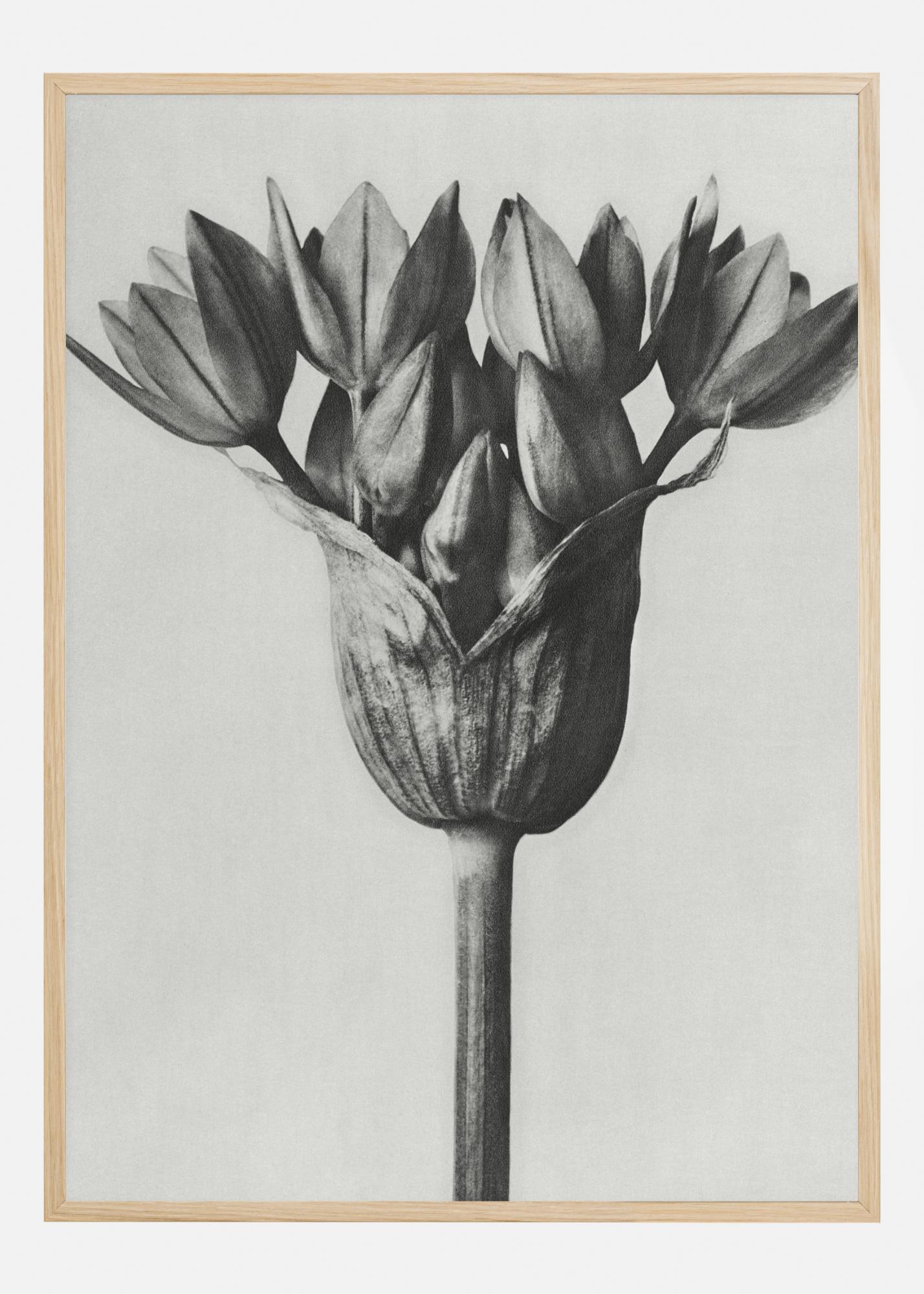 Une belle affiche en noir et blanc d'une fleur d'où émergent de nombreuses petites fleurs. Elle dépeint un symbole de bonheur par son élégance et sa simplicité. Les effets d'ombre et de lumière créent une belle impression sur un simple fond gris. Un imprimé qui convient à un environnement spacieux comme le salon ou la chambre à coucher.