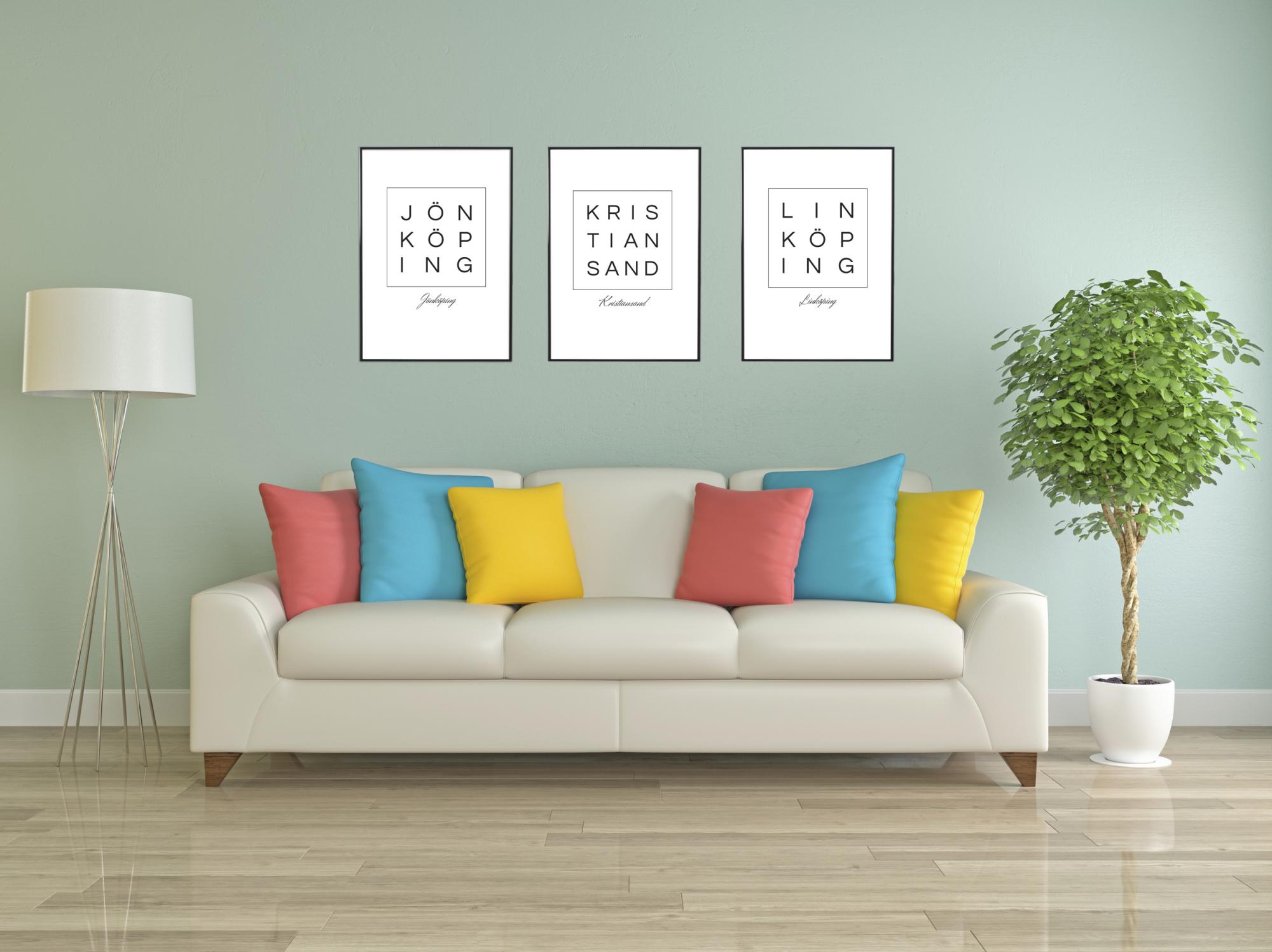Si votre ville préférée est Jönköping, ce poster est parfait pour être encadré et placé sur un bureau ou accroché au mur. Le poster a un design simple et épuré avec le texte "Jönköping" imprimé à deux endroits. Au milieu, vous trouverez le texte écrit en grandes lettres noires à l'intérieur d'un carré décoratif. Sous le carré, le texte est écrit avec des lettres noires ornées. Comme le poster est disponible en plusieurs tailles, vous trouverez facilement celui qui vous convient. N'hésitez pas à le compléter avec un beau cadre de notre large sélection !