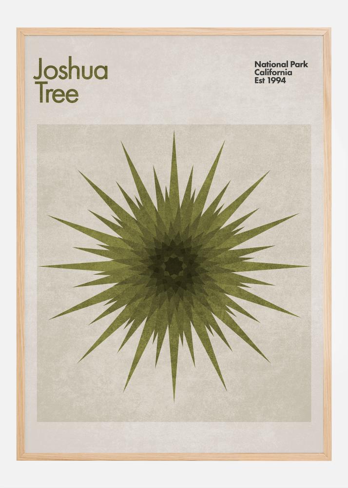 Cette affiche évocatrice représente une interprétation abstraite de l'emblématique Arbre de Joshua, centrée et proéminente au milieu de l'image. La couleur vert profond du motif évoque la nature apaisante et le paysage désertique robuste dont cet arbre est le foyer. L'abstraction de l'arbre, avec ses branches étendues, crée un motif presque hypnotique à la fois contemporain et intemporel.