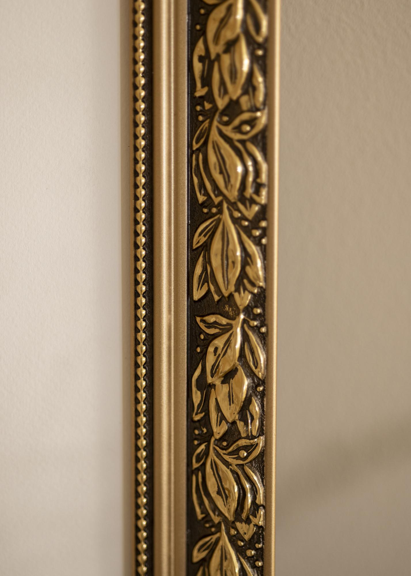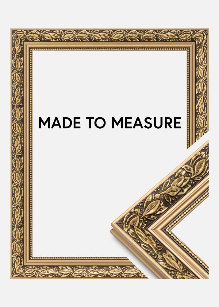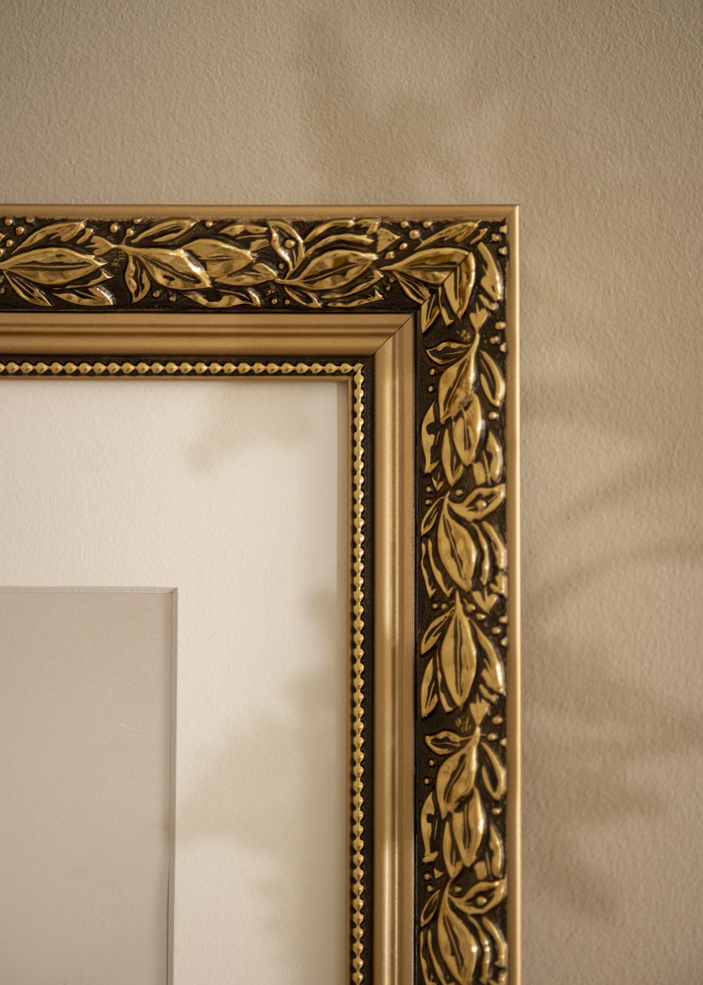 Une photo précieuse mérite un beau cadre ! Nous avons ici un cadre photo au design romantique avec des bords dorés, des motifs de feuilles enroulées en or sur un fond marron et un ruban d'or doux avec des formes de perles près du verre. Utilisez-le pour une vieille photo en noir et blanc dont vous avez hérité ou créez un contraste passionnant avec une photo nouvellement prise. Puisque le cadre est fabriqué avec vos mesures, vous pouvez être sûr qu'il conviendra exactement où vous souhaitez le suspendre !