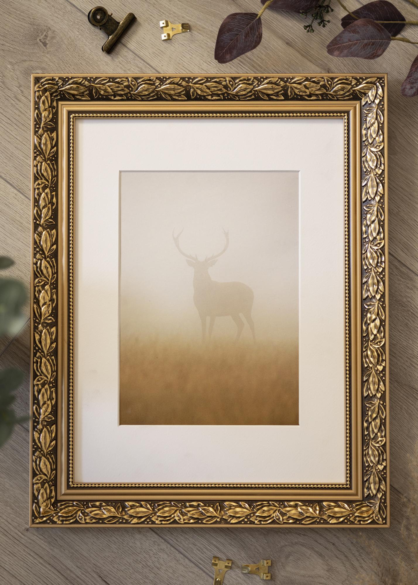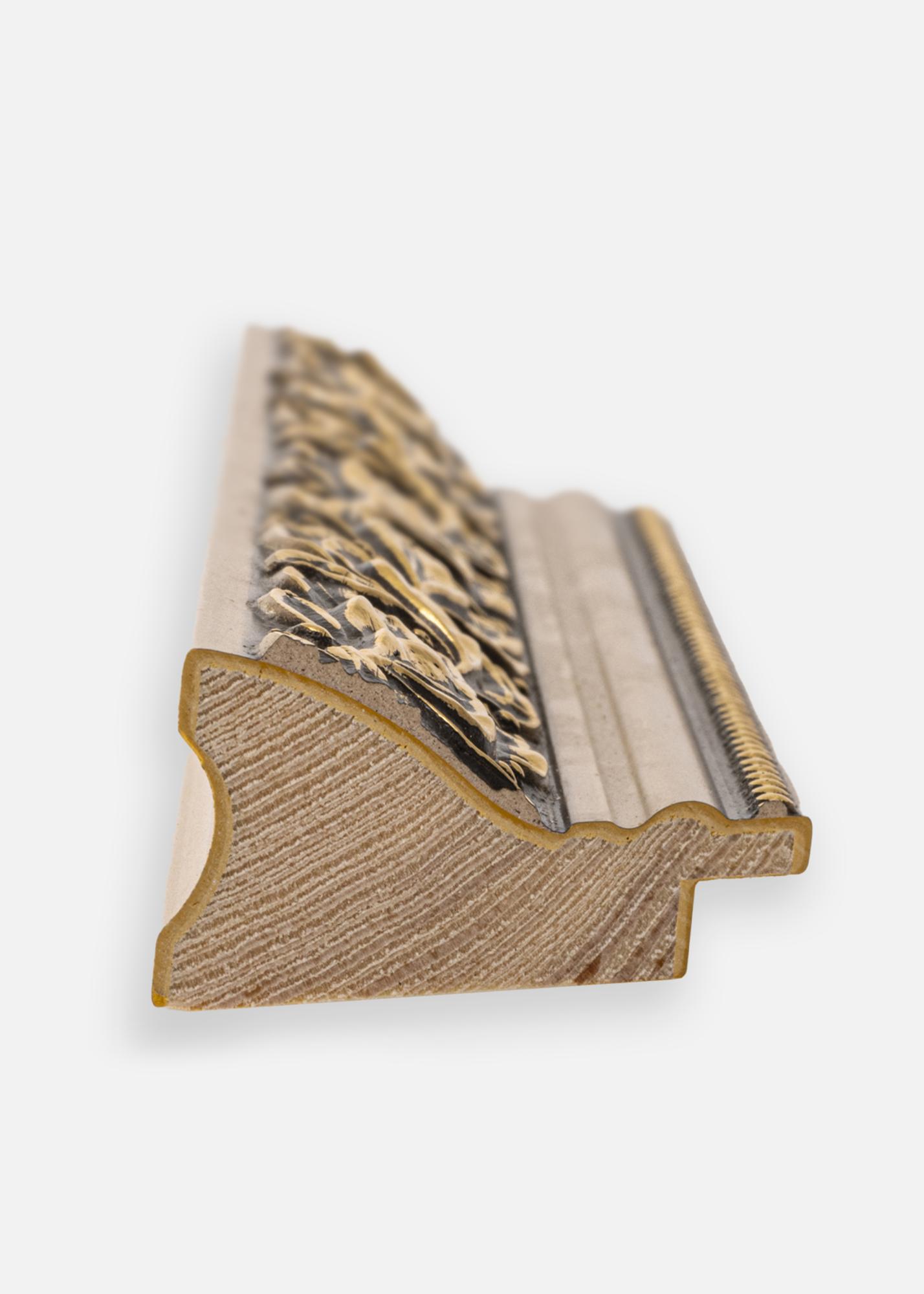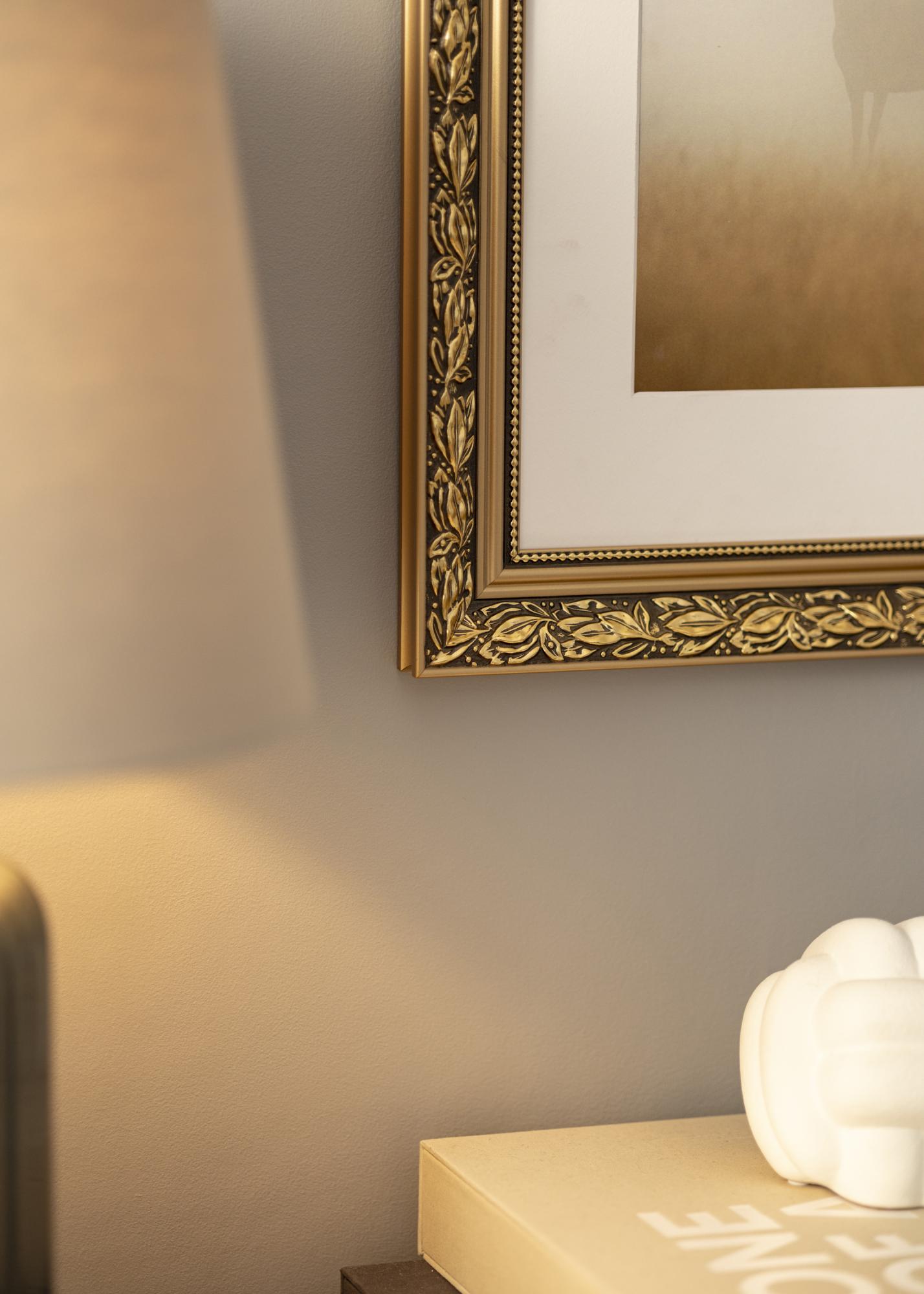 Une photo précieuse mérite un beau cadre ! Nous avons ici un cadre photo au design romantique avec des bords dorés, des motifs de feuilles enroulées en or sur un fond marron et un ruban d'or doux avec des formes de perles près du verre. Utilisez-le pour une vieille photo en noir et blanc dont vous avez hérité ou créez un contraste passionnant avec une photo nouvellement prise. Puisque le cadre est fabriqué avec vos mesures, vous pouvez être sûr qu'il conviendra exactement où vous souhaitez le suspendre !