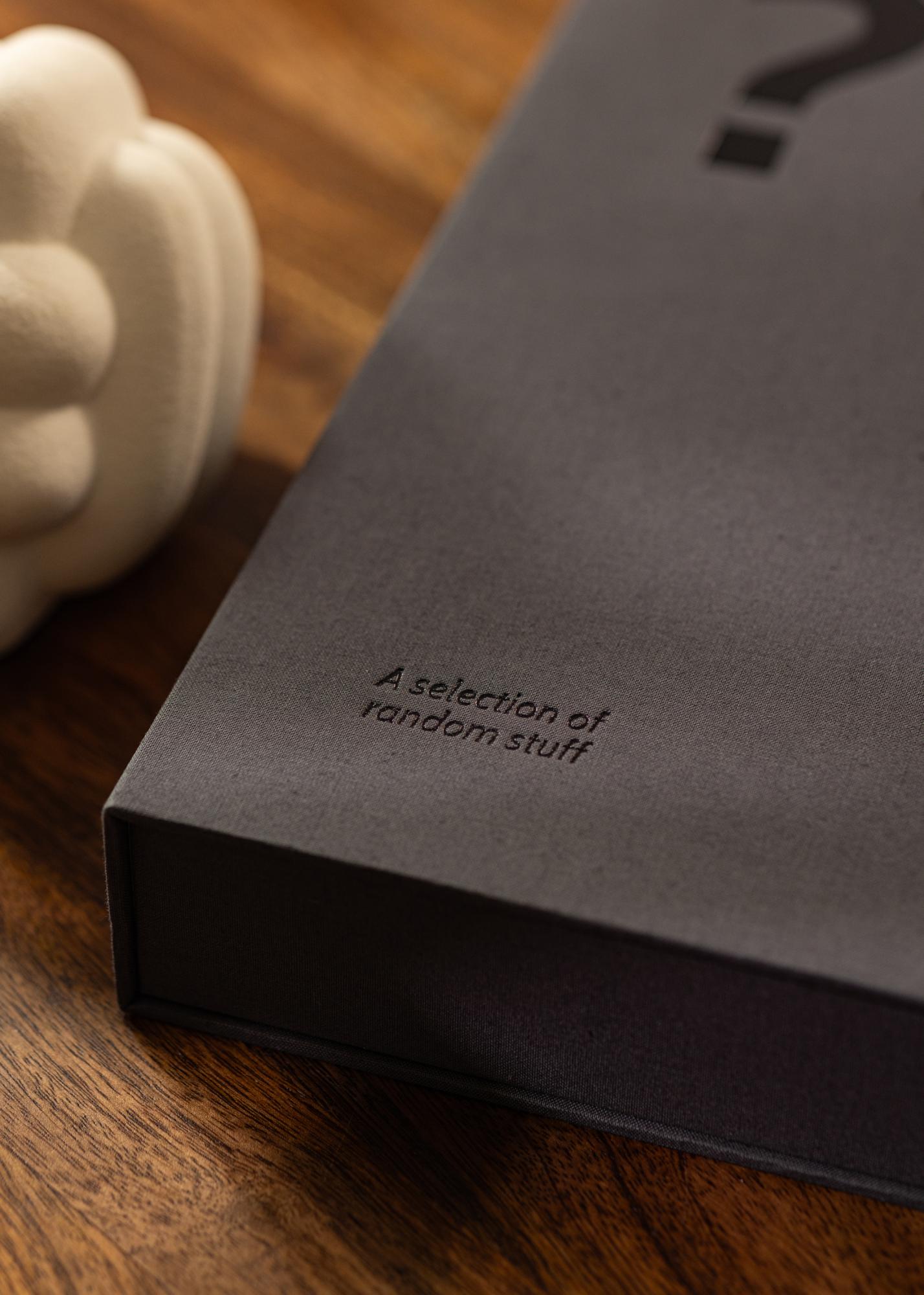 Lorsque les mots sont superflus et que les images et les souvenirs peuvent parler d'eux-mêmes, vous pouvez vous procurez un album photo avec le titre : ?!!. Ce Coffee Table Photo Album a un design original et ludique - mais en même temps très esthétique - ce qui le rend élégant comme détail d'intérieur élégant et pratique en tant qu'album photo. L'album photo est élégamment habillé de textile noir et le titre sans mots est imprimé en brillant sur le devant de l'album. Dans le coin inférieur gauche de l'album, vous trouverez également une impression avec le sous-titre A selection of random stuff.