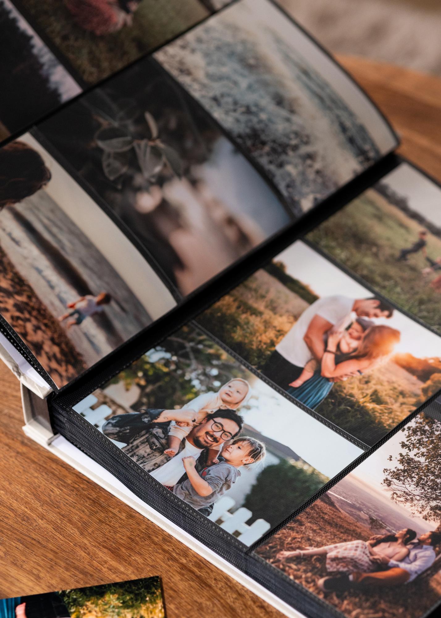 Les couvertures de l'album sont dans une teinte beige épurée qui procure une sensation intemporelle et sophistiquée. Les pages noires à l'intérieur de l'album créent un beau contraste et mettent en valeur vos photographies de manière élégante. L'album se compose de 120 pages, ce qui équivaut à 60 feuilles, et offre amplement d'espace pour créer une archive d'images complète.