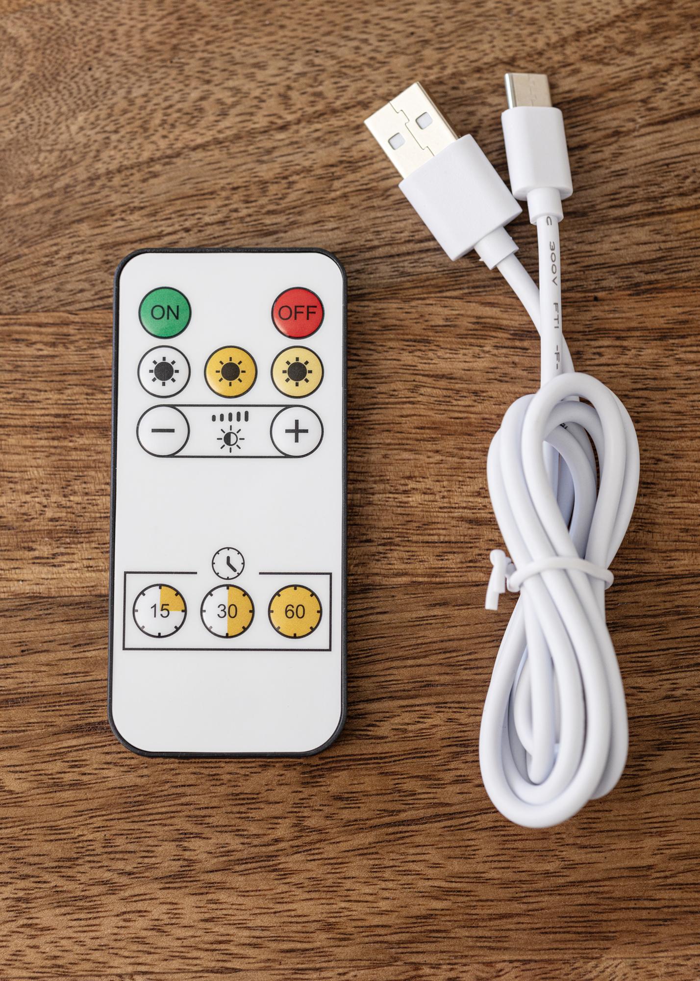 Le design blanc et élégant s'intègre dans la plupart des intérieurs et donne une impression moderne. L'éclairage est contrôlé par une télécommande incluse, ce qui permet de régler facilement la luminosité et de programmer une minuterie pour l'arrêt automatique après 15, 30 ou 60 minutes. Cela vous permet d'optimiser la durée de vie de la batterie et d'ajuster l'éclairage selon vos besoins.