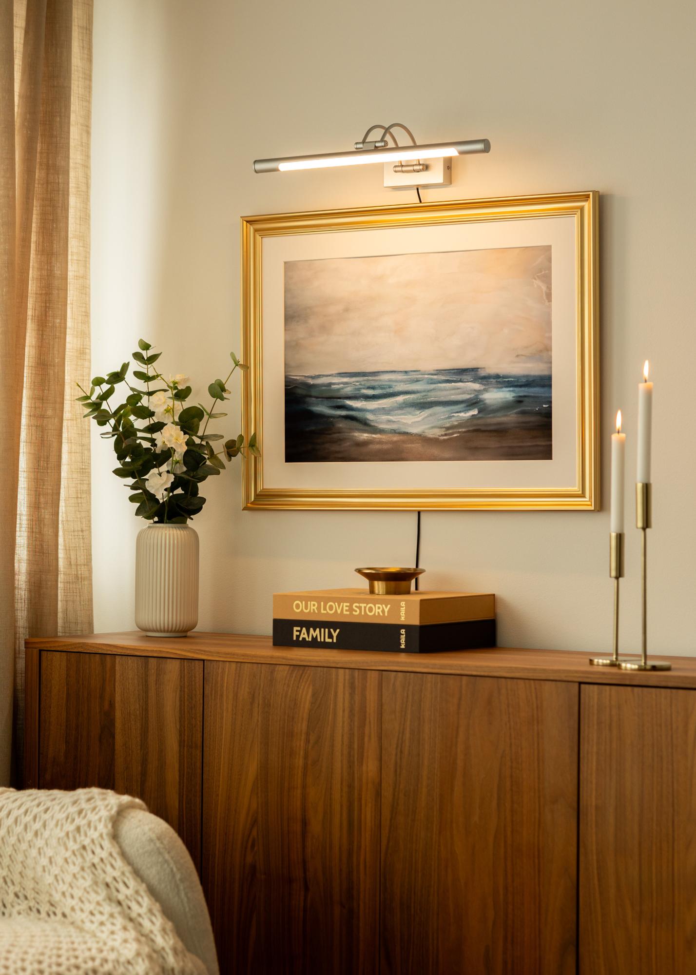 La finition argentée élégante s'intègre parfaitement dans les intérieurs modernes et classiques, et fonctionne comme un complément subtil mais efficace à vos décorations murales. Avec cet éclairage de tableau, vous pouvez être sûr que vos œuvres d'art sont mises en valeur de manière raffinée et adaptable, créant une sensation harmonieuse dans la pièce.